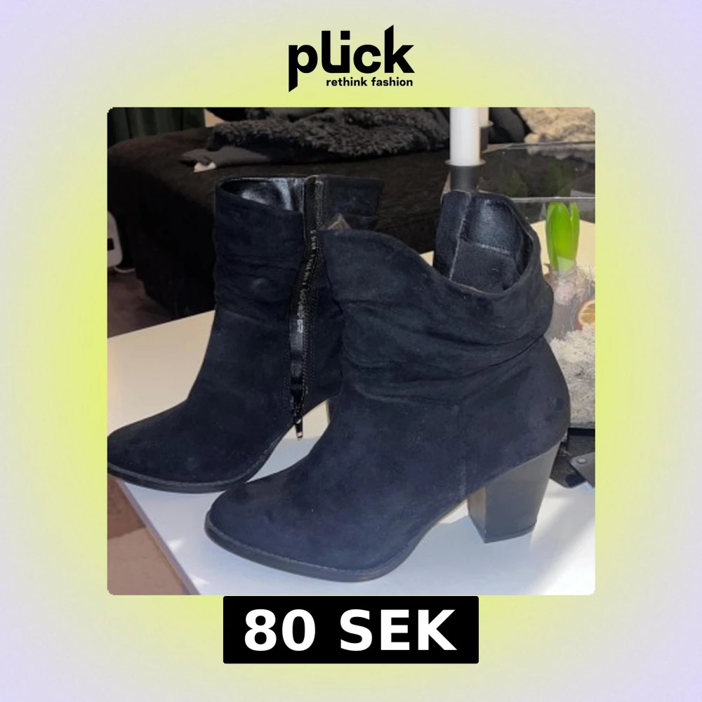 Snygga svarta boots i mocka med dragkedja på sidan och en stabil klack. Perfekta för både vardag och festliga tillfällen.