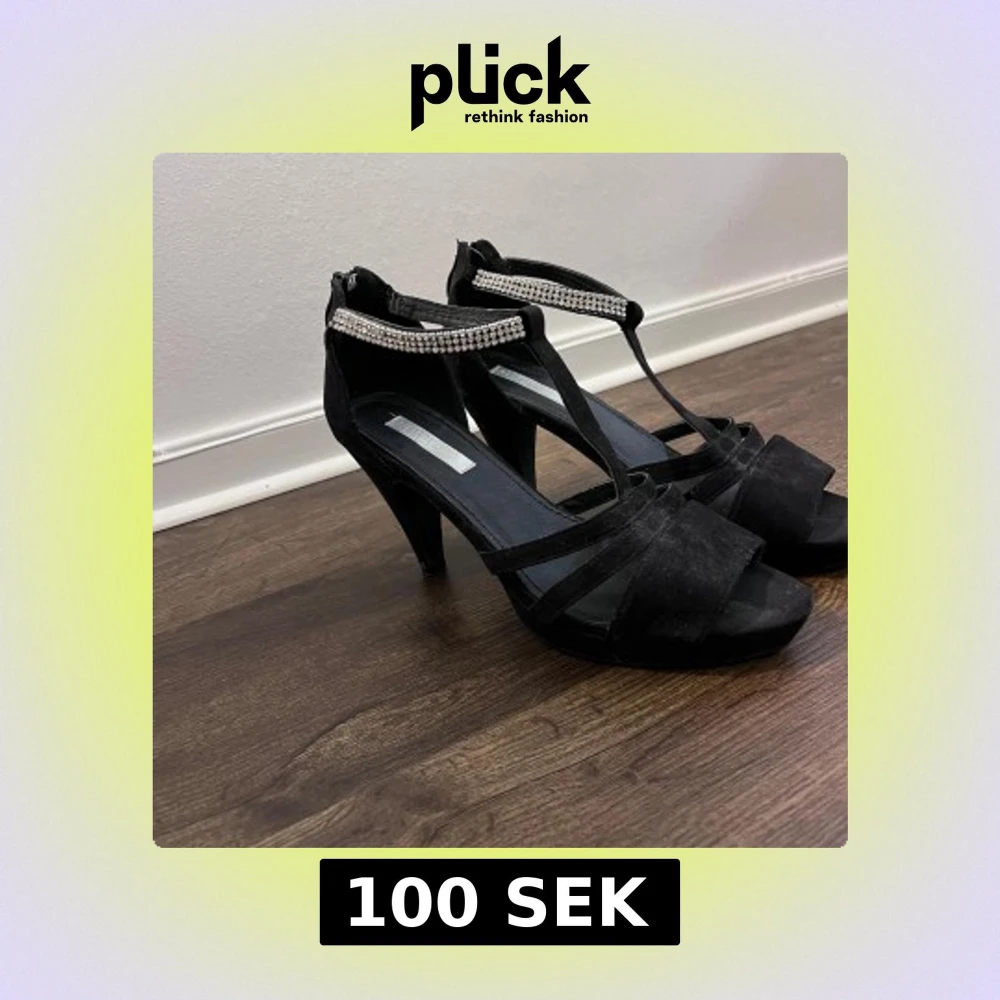 Snygga svarta klackar med glittrande strass runt vristen. Dragkedja bak för enkel påtagning. Perfekta för att lyfta din outfit.