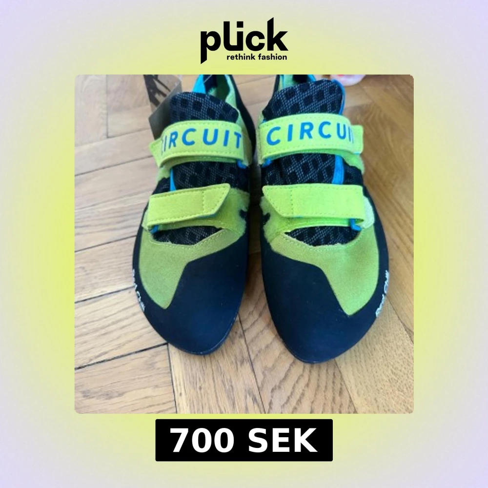 Säljer ett par Red Chili Circuit klätterskor i limegrönt och svart med blå detaljer. Skorna har två kardborreband med text, rund tå och slitstark gummisula. Ovandelen är i syntet och mocka för bra grepp och komfort. Perfekta för klättring och bouldering.