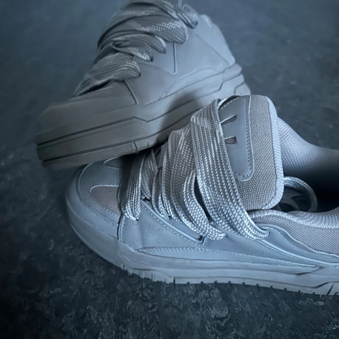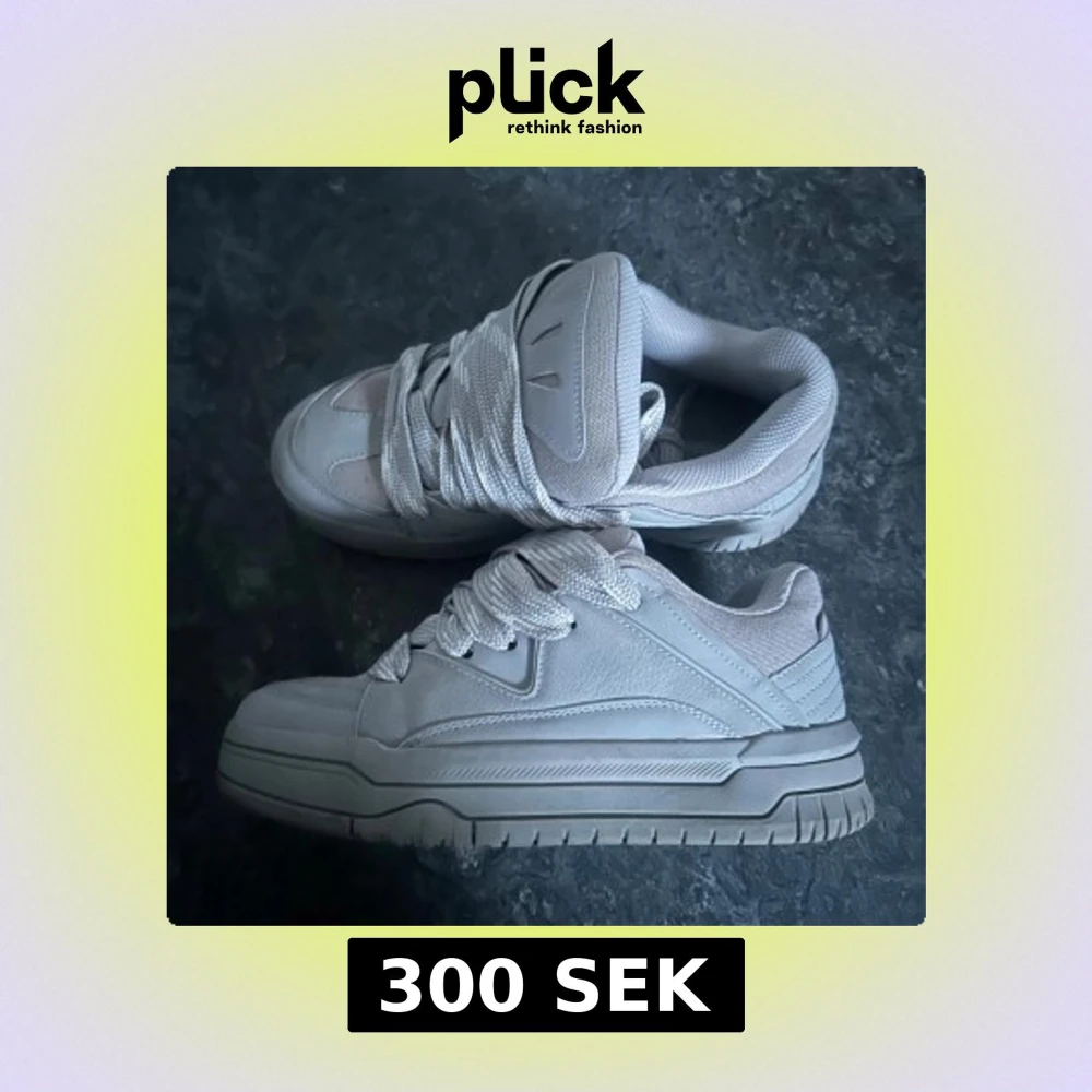 Säljer ett par grå chunky sneakers med bred sula och kraftiga snören. Riktigt fina och sköna skor, dock lite för små för mig! Finns inte så mycket att säga om de, riktigt chunky skor som är bra nu för vintern, priset kan också diskuteras på dessa!