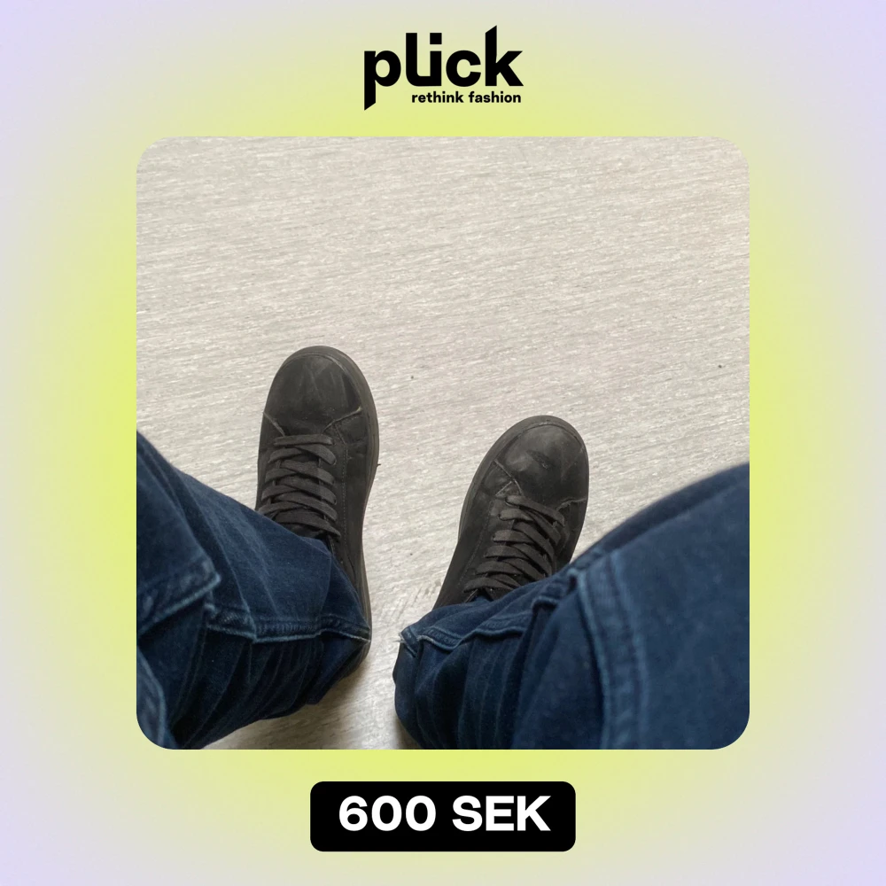 Säljer ett par svarta sneakers i skinn. De har en klassisk design med snörning och är i bra skick. Perfekta för vardagsbruk och passar till det mesta i garderoben. Skostorlek 40.jag kan diskutera om priset och om köparen ska köpa så tvättar jag skorna och gör dom fräscha