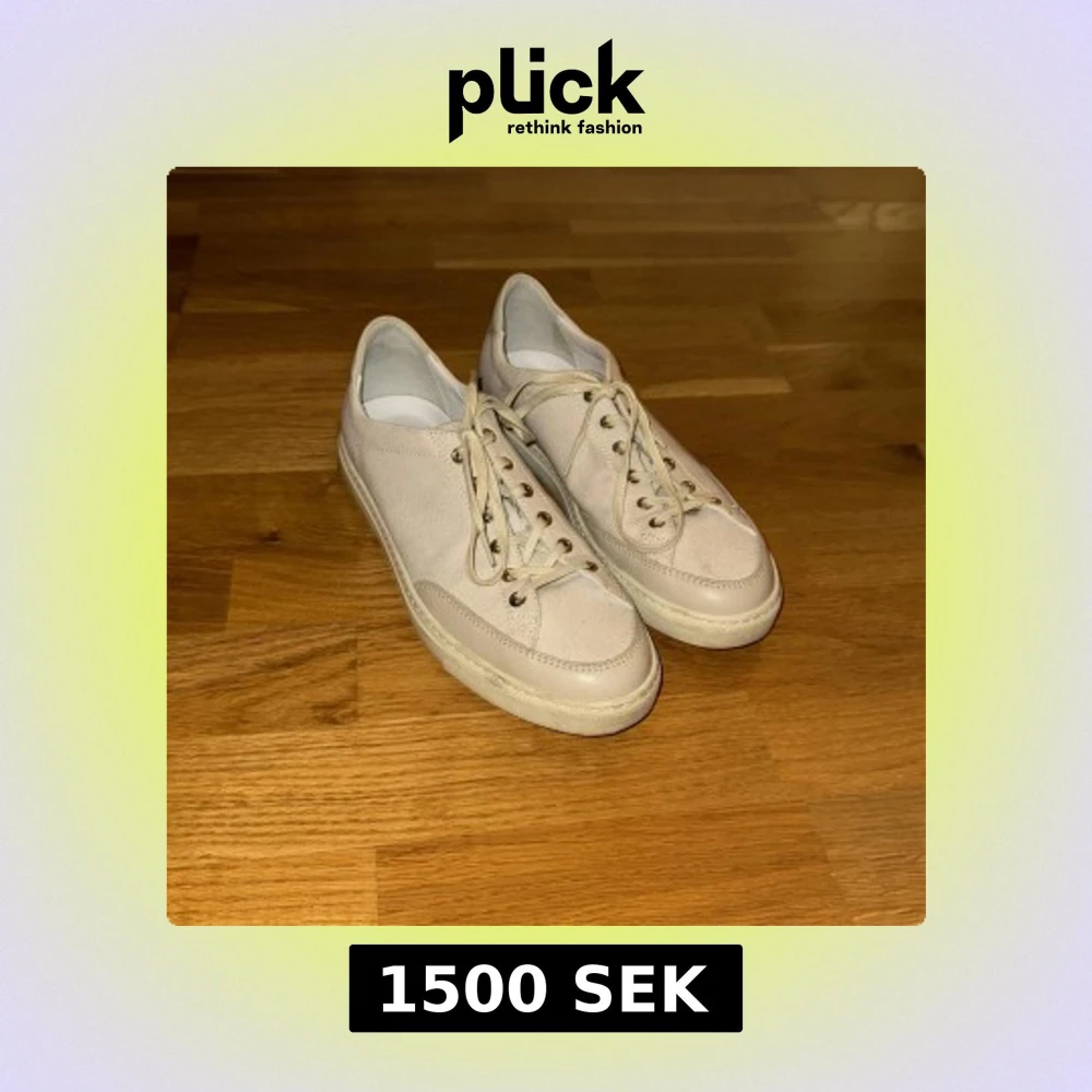 Ett par samples från CQP, köptes på deras utförsäljning i slutet på april för 1900. Står ingen storlek i de men runt 40 ungefär. Modellen liknar deras bumper modell men i tyg istället. Har inte fysiskt kvitto pga att de köptes på utförsäljning men har digitalt kvitto. Använt 2-3 gånger men var för små på mig så har legat ett bra tag hemma. Ser mer beigea ut på bilderna pga telefonficklampan men de är lite vit/gråa i verkligheten. Skriv gärna vid frågor