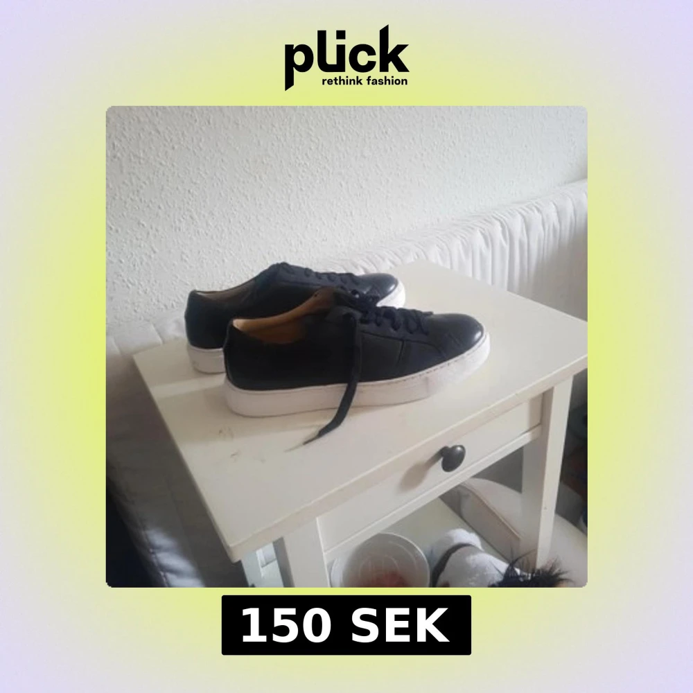 Snygga svarta sneakers från Marstrand med vit platt sula och klassisk snörning. Skorna har en stilren och enkel design med rund tå och är tillverkade i skinn för en schysst look. Perfekta för dig som gillar minimalistisk stil och vill ha något som funkar till det mesta.