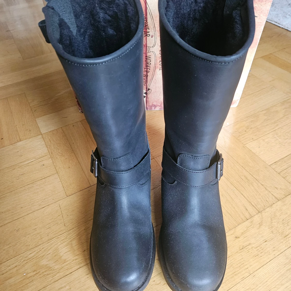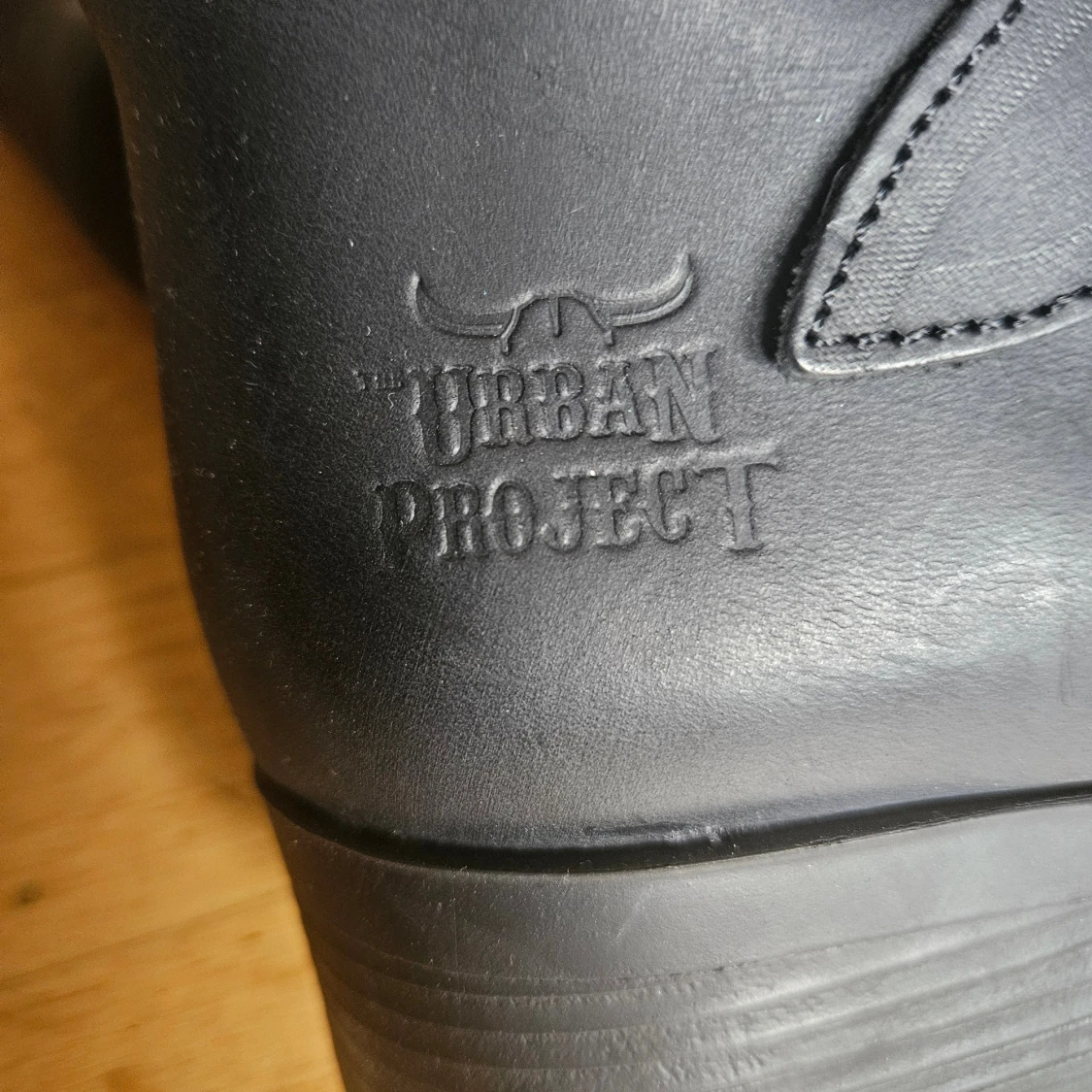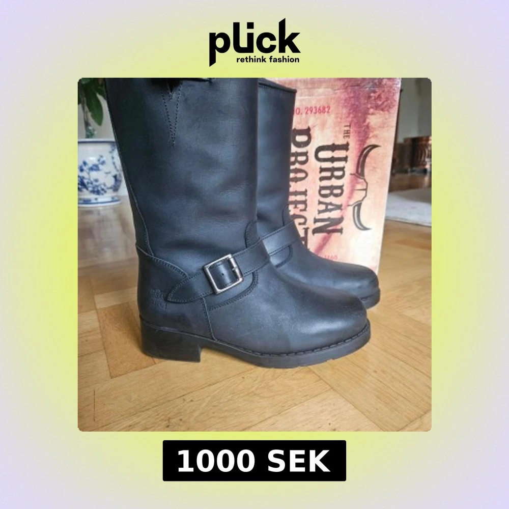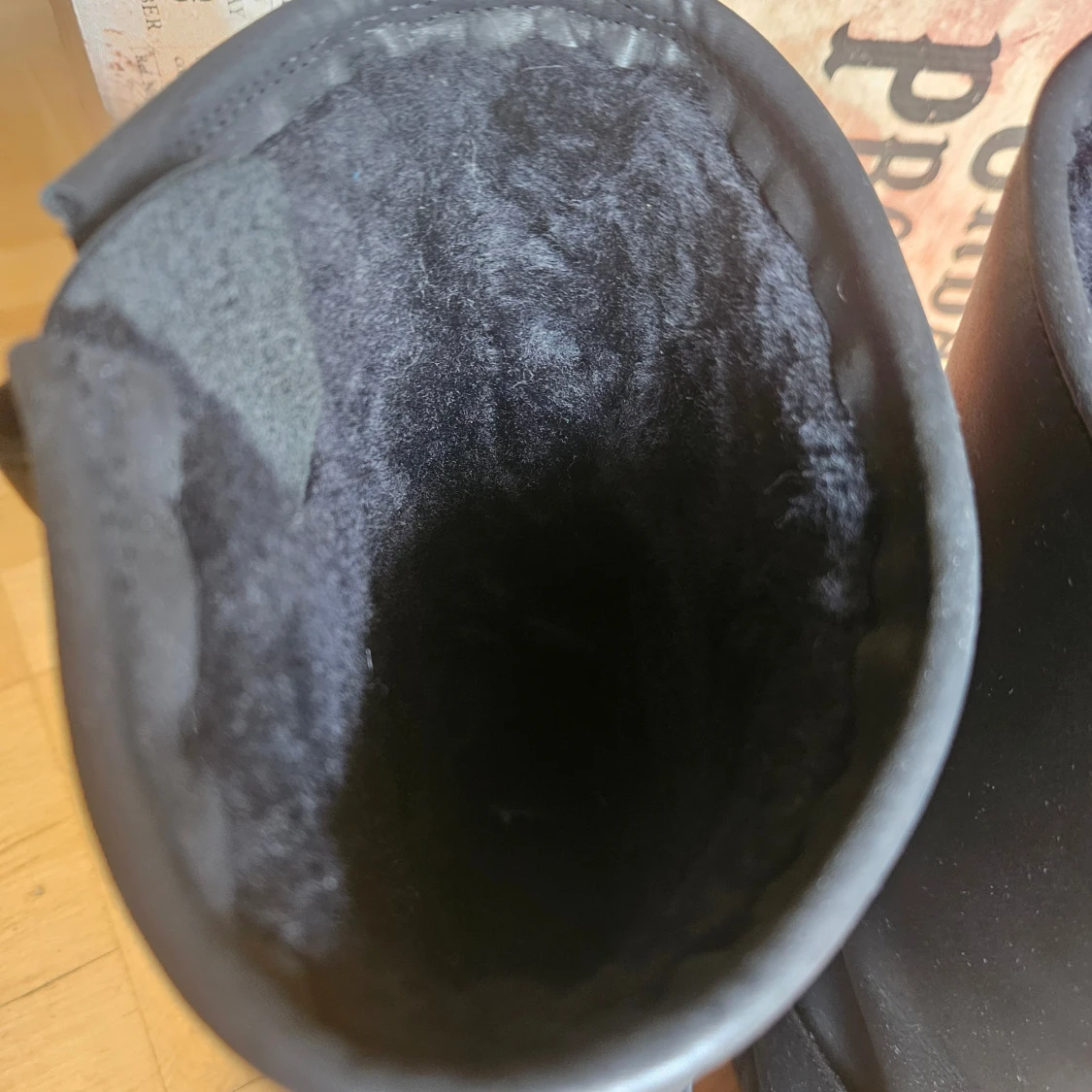 Svarta boots i skinn från Urban Project med grov sula och rund tå. Insidan är fodrad med mjuk päls för extra värme. Provade utomhus 10 minuter, köpt för 1800:-
