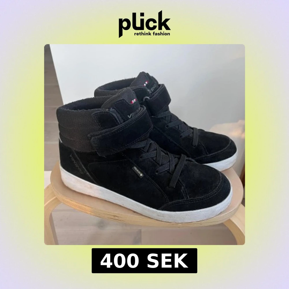 Svarta mellanhöga Eagle Warm GTX (junior) – varma, lätta och helt vattentäta vintersneakers i mocka med Gore-Tex och fleecefoder. Enkla att ta på med elastiska snören + kardborre. Endast använda några månader innan de blev urvuxna. Nypris 1350 kr. Finns i Sollentuna, kan skickas.