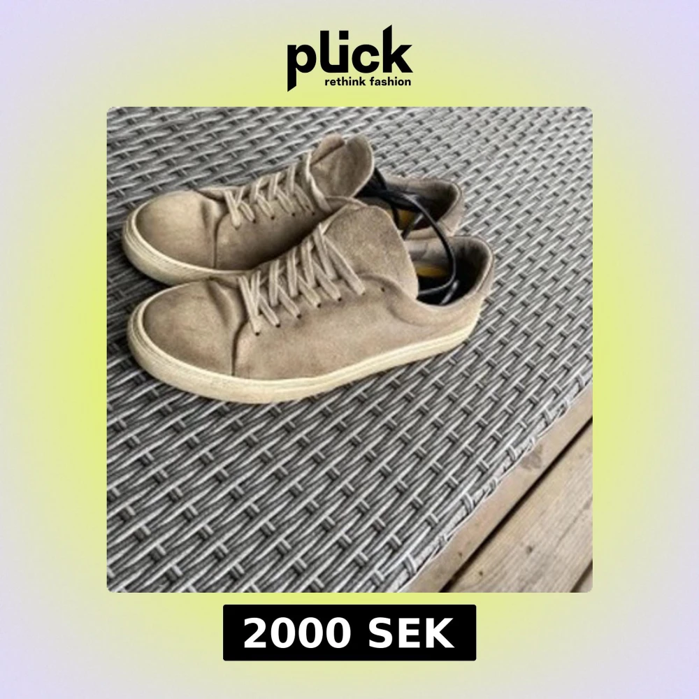 Snygga beige sneakers i mocka med snörning. Perfekta för en avslappnad stil. De har en klassisk design med rund tå och en ljus sula.