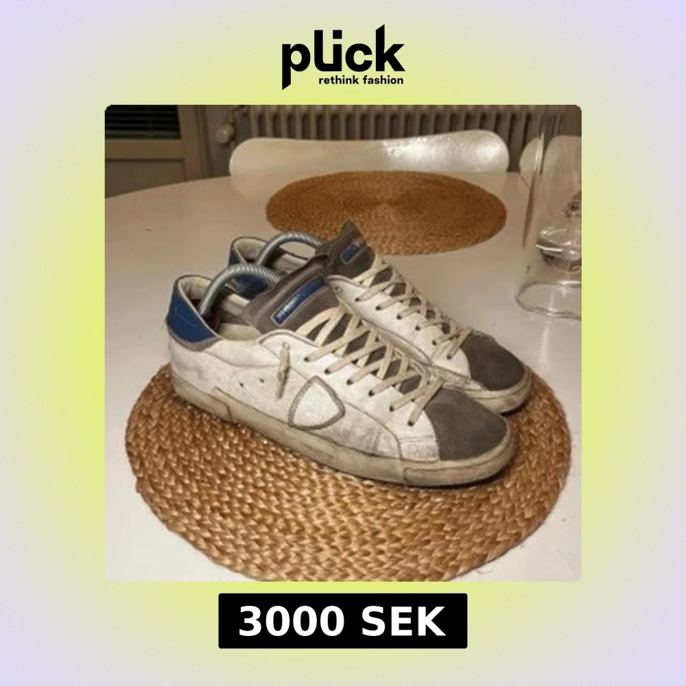 Snygga sneakers i grått och vitt med blå detaljer på hälen. Skorna har snörning och en klassisk design som passar perfekt för en avslappnad stil.