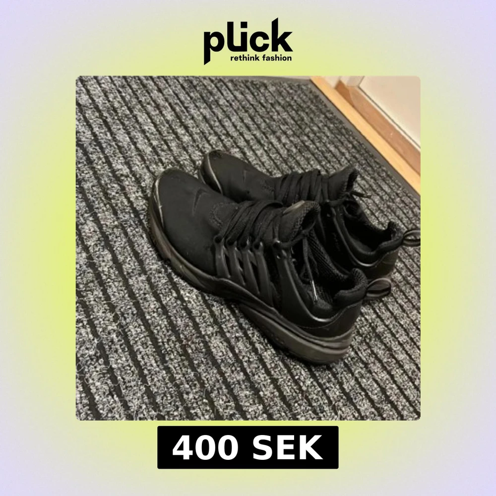 Säljer ett par svarta presto skor har tagits hand om väl. Använda cirka 4 gånger. Har dock ett litet hål på framsidan men syns knappt