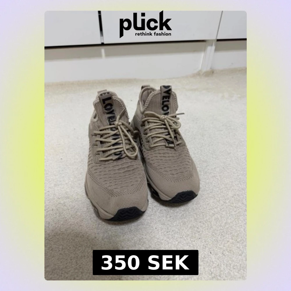 Snygga beige sneakers med stickad ovandel och cool textdetalj på plösen. Skorna har snörning och en sportig sula med transparenta partier. Perfekta för dig som gillar en clean och modern stil.