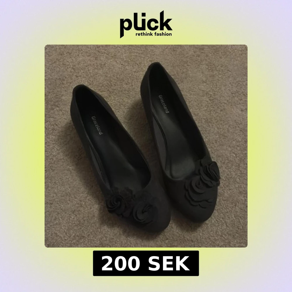 Snygga svarta pumps från Graceland med rund tå och dekorativa blommor framtill. Skorna har en låg klack och är tillverkade i mocka-liknande material som ger en mjuk känsla. Perfekt för dig som gillar stilrena detaljer och vill ha något extra på fötterna.