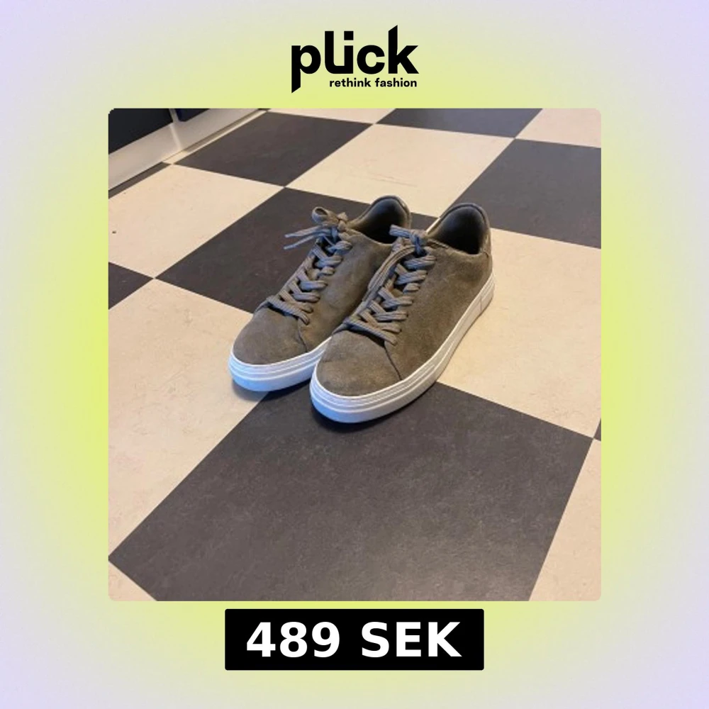 Snygga grå sneakers i mocka med vit sula och klassisk snörning. Perfekta för en avslappnad stil.