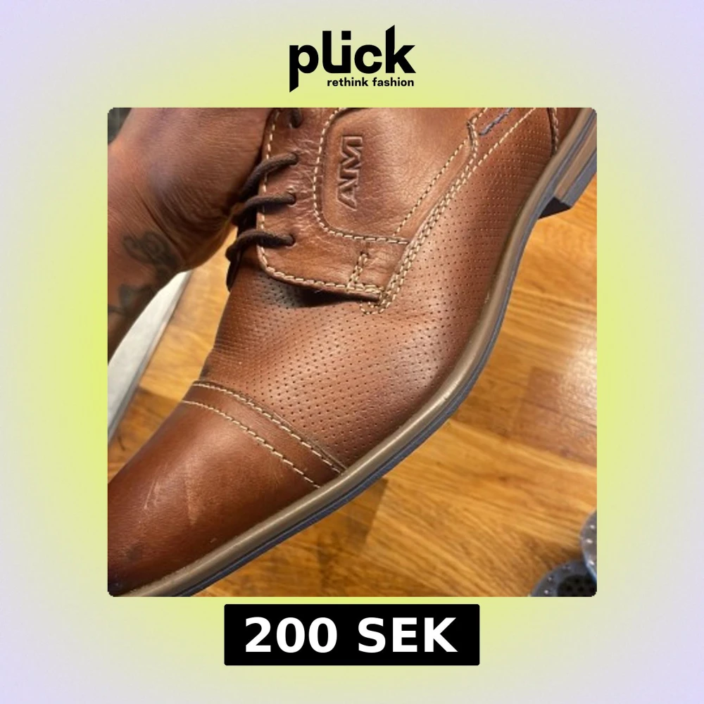 Snygga bruna loafers från AM Shoe Company i skinn med perforerade detaljer och kontrastsömmar. Skorna har snörning och en klassisk, stilren design med rund tå och platt sula. Perfekta för dig som vill ha en dressad look med en modern touch.