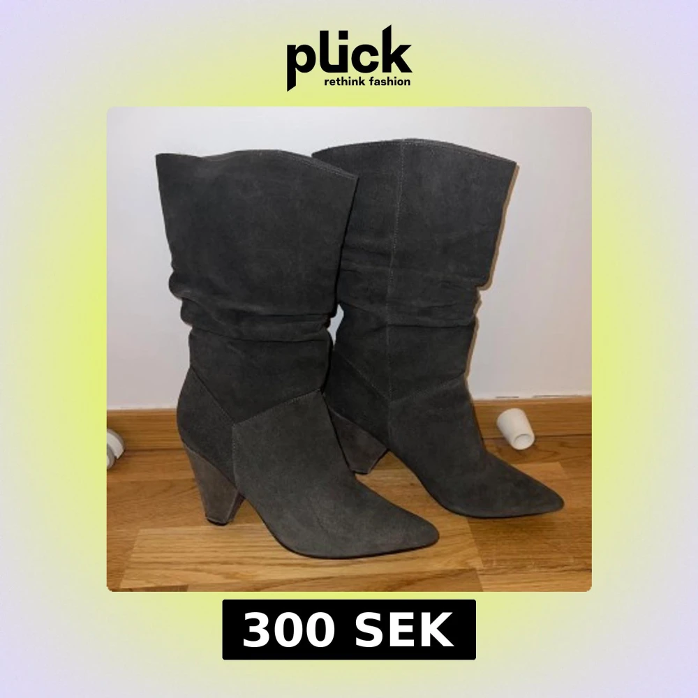 säljer dessa isabel marant liknande, snygga grå stövlar i mocka med en elegant kilklack och spetsig tå från mohito💘 använd cirka 5 gånger men säljer på grund av att jag har för många klackar, normal i storlek!