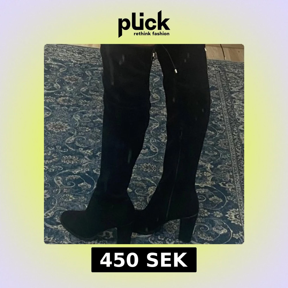 ANVÄNDA EN GÅNG. PRIS KAN DISKUTERAS!Snygga svarta overknee stövlar med hög klack och rund tå. Stövlarna har snörning upptill och är gjorda i ett mockaliknande material som ger en lyxig känsla. Perfekta för att lyfta vilken outfit som helst.