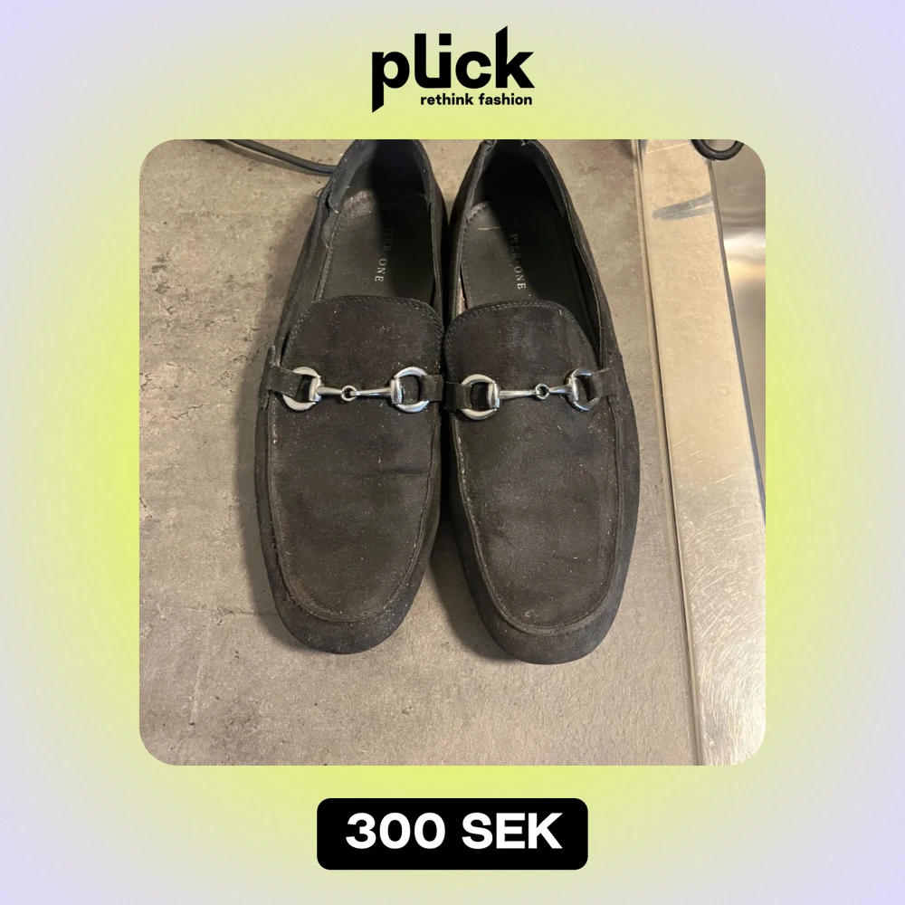 Snygga svarta loafers i mocka från Pier One. De har en stilren design med metallspänne på ovansidan. Perfekta för både vardag och festliga tillfällen. Skorna är i bra skick och redo att användas direkt.