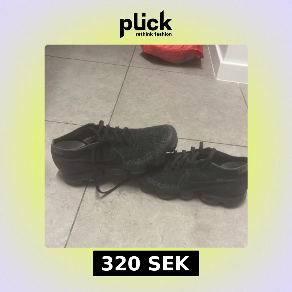 Hej säljer ett par vapor Max i storleken 41, har inte använt dom på ett väldigt bra tag,. Skorna är i ganska bra skicka. Hör av er om det duckar upp några frågor.