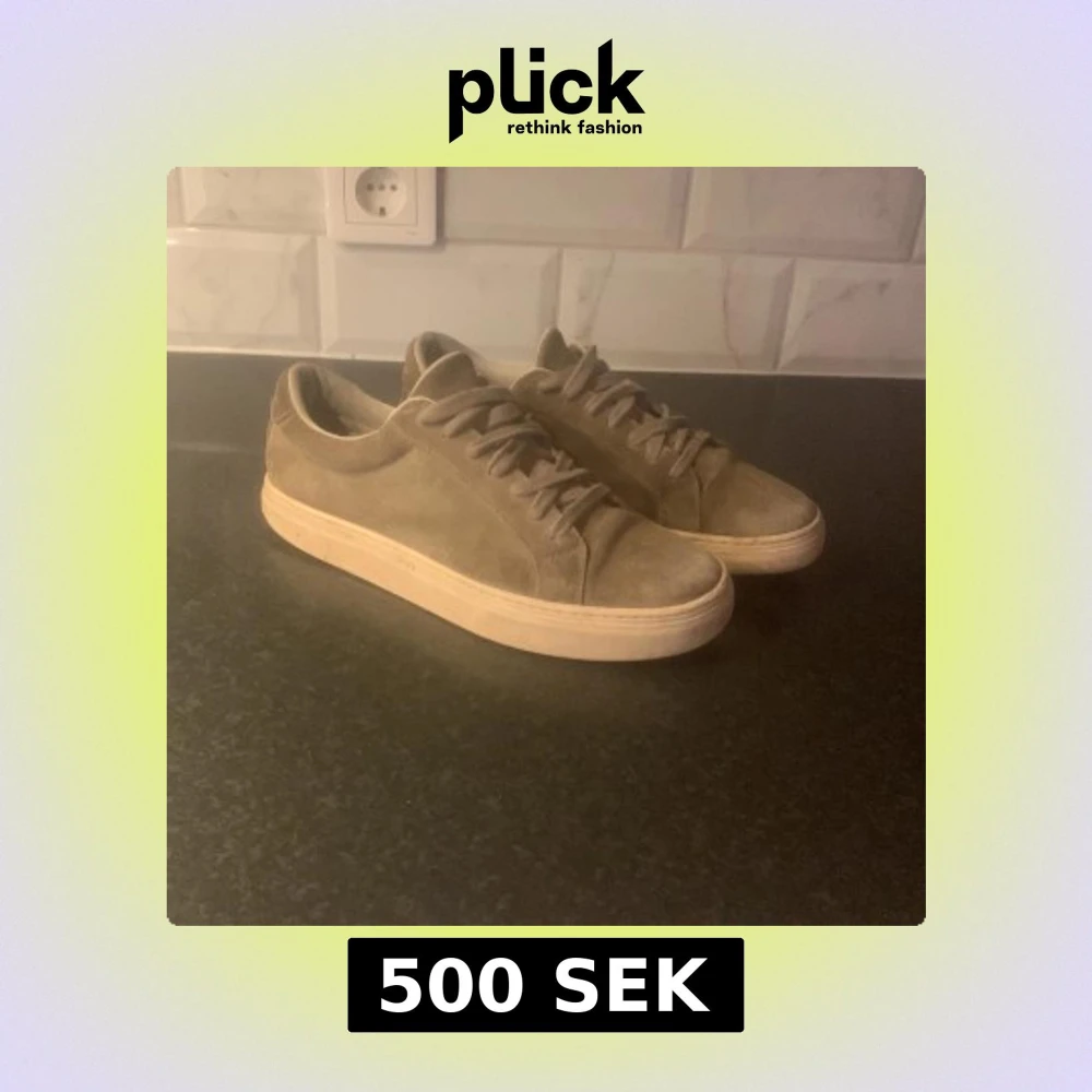 Snygga beige sneakers i mocka med rund tå och snörning. Perfekta för en stilren look. Sulan är i en ljusare nyans som ger en fin kontrast till det övre materialet.