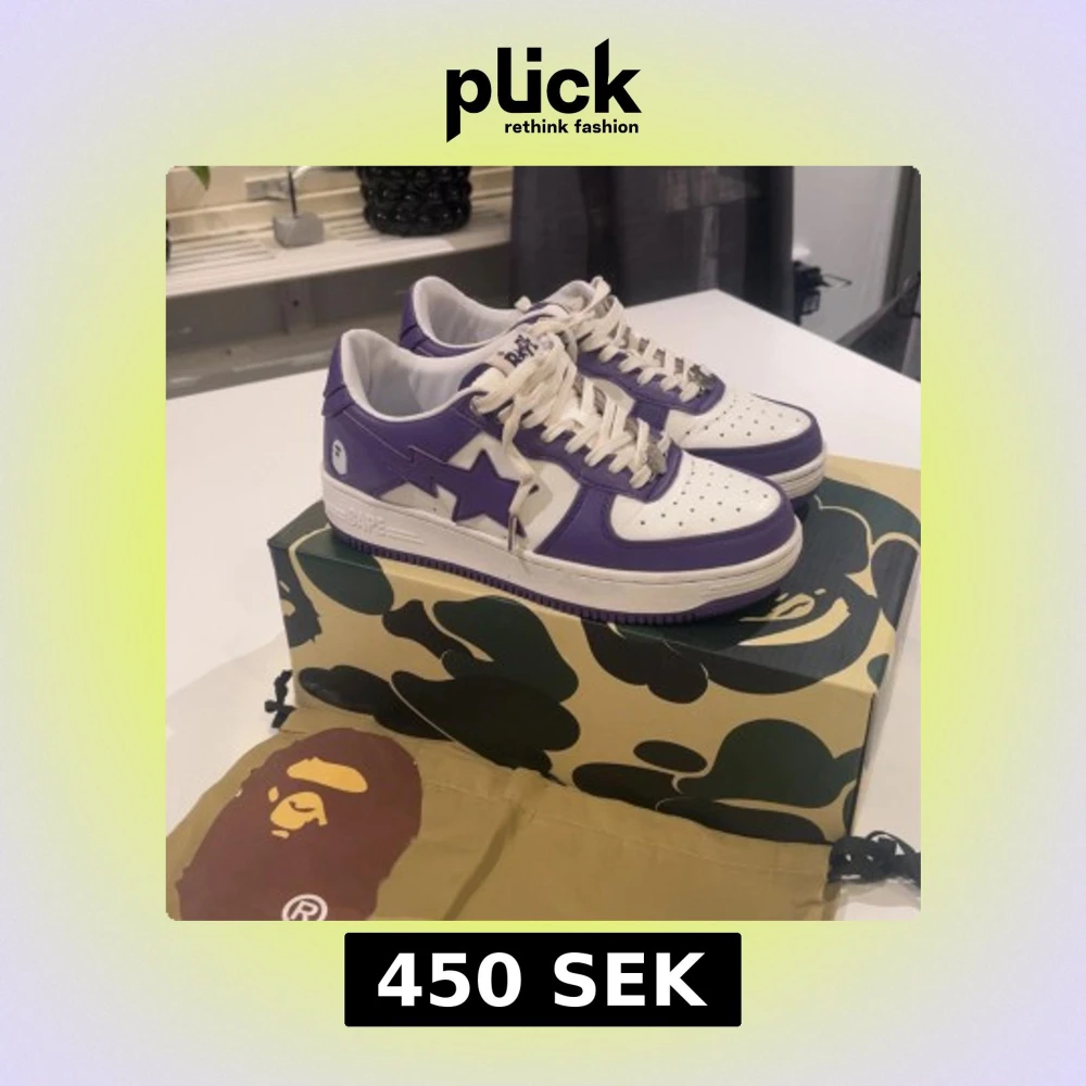 Säljer ett par Bape skor i lila och vitt i bra skick och, originalkartong och skosulor förekommer ej men dustbag med Bape-logga förekommer. Pris kan snackas om!