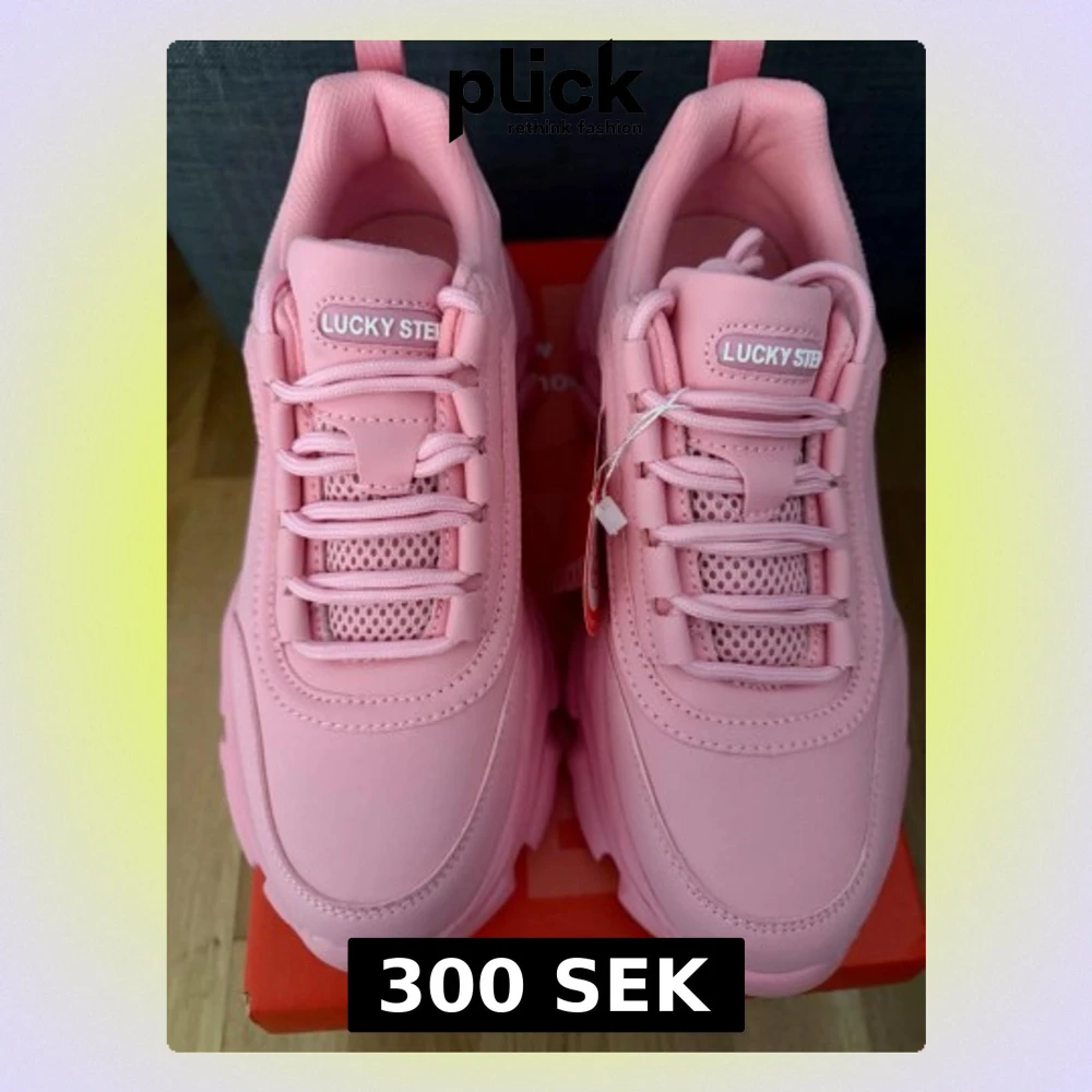 Säljer ett par chunky rosa sneakers från Lucky Step med kraftig sula och snörning. Skorna har meshdetaljer på ovansidan för extra ventilation och en modern, sportig look. Perfekta för dig som vill sticka ut med färg och stil.