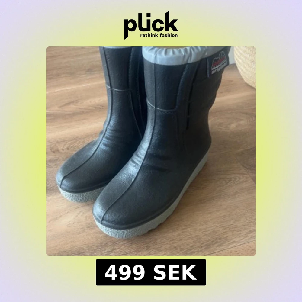 Säljer ett par svarta vinterstövlar från Polyver med grå sula och foder. Stövlarna har en robust design med bra grepp på sulan, perfekt för kalla och hala dagar. De är vadderade för extra värme och komfort.