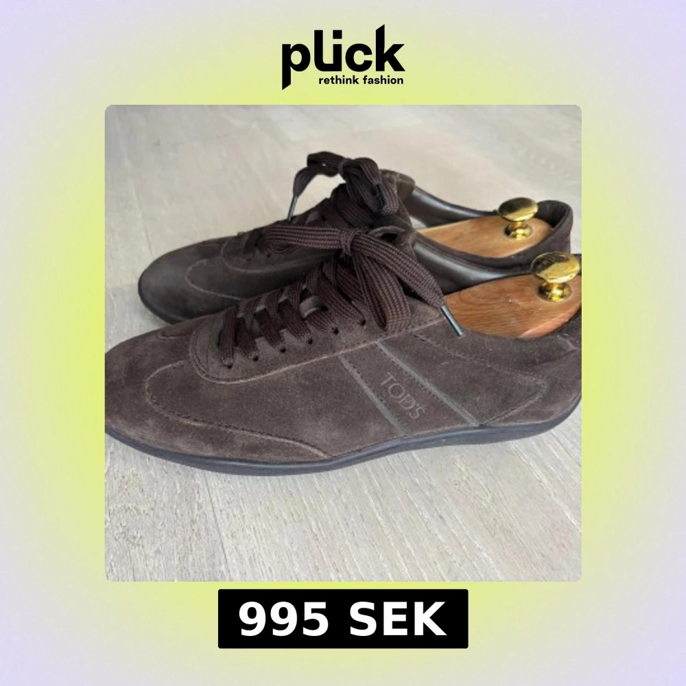Säljer ett par stilrena bruna sneakers från Tod's i mjuk mocka. Skorna har rund tå, platt sula och klassisk snörning. Perfekta för dig som gillar en clean och tidlös look med premiumkänsla.