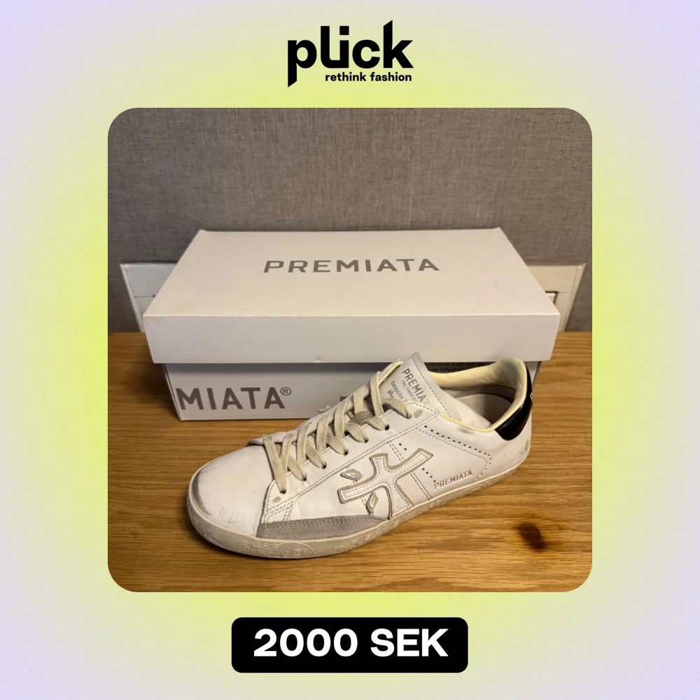 Säljer ett par vita sneakers från Premiata i bra skick. De har en snygg design med snörning och en svart detalj vid hälen. Perfekta för vardagsbruk och ger en stilren look. Sulan är i gott skick och skorna är bekväma att gå i.