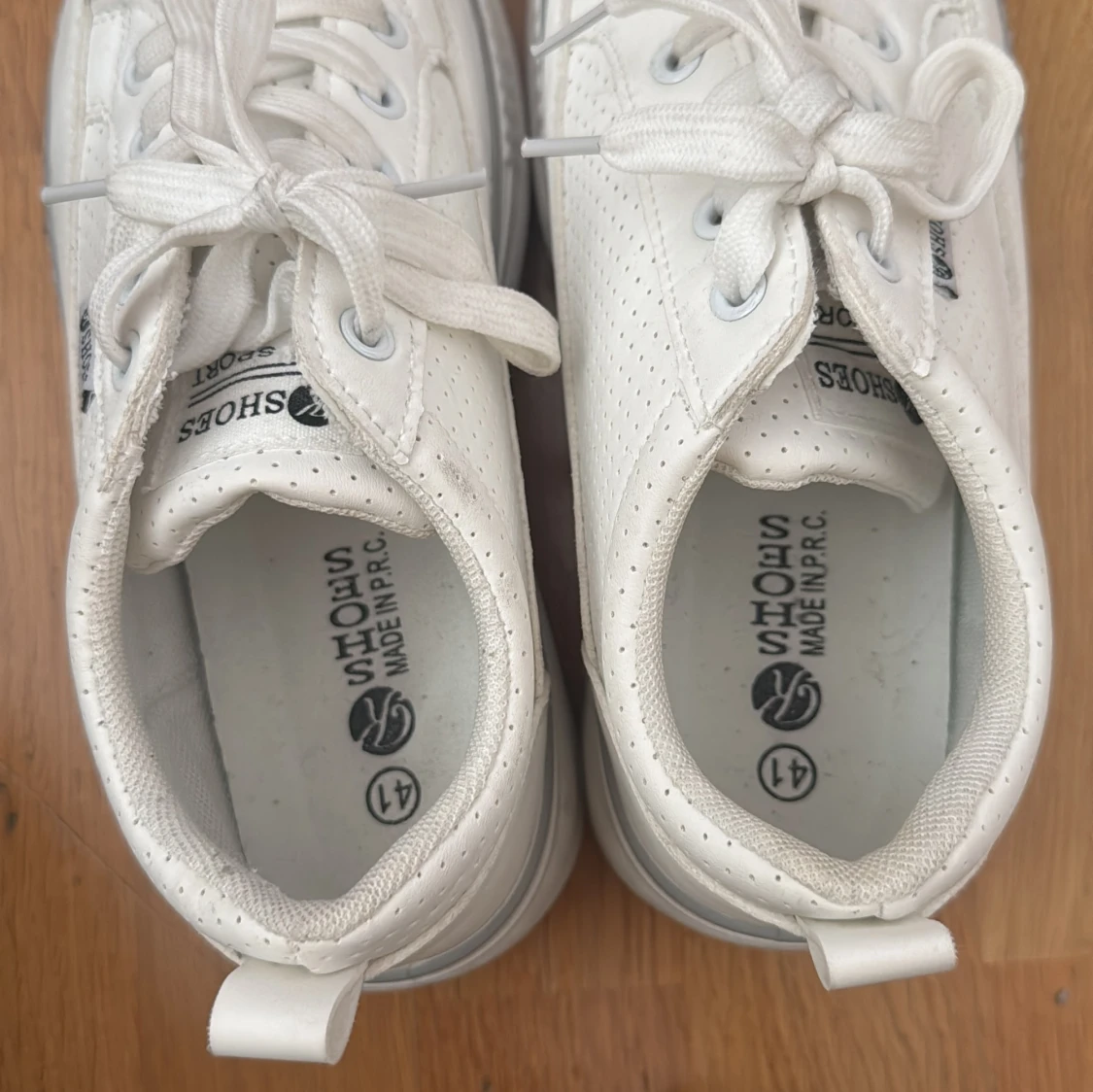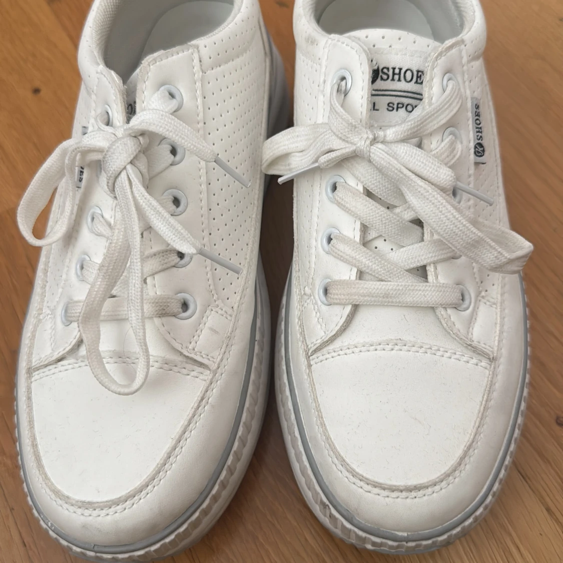 Fräscha vita sneakers från YS Shoes med klassisk rund tå och platt sula. Skorna har perforerade sidor för extra ventilation och snygga vita snören. Perfekt för dig som gillar stilrena och sportiga skor med en clean look.