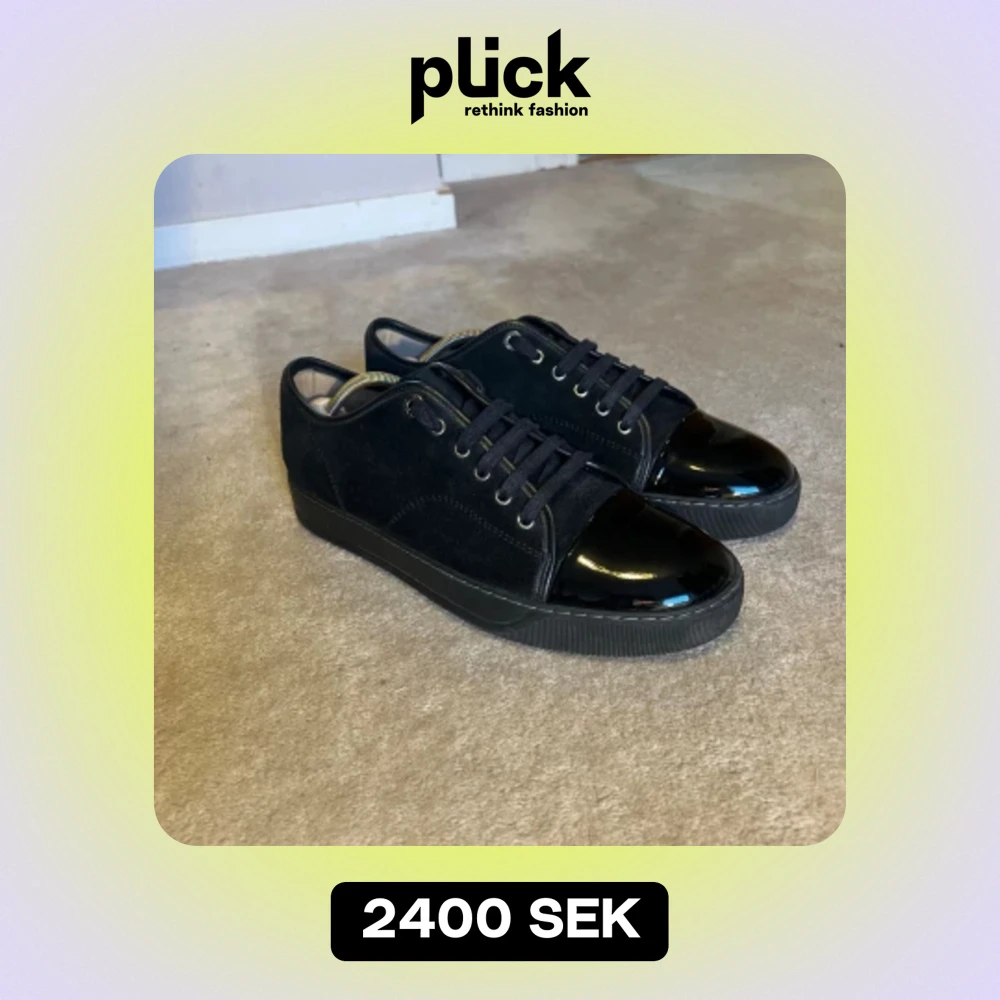 Helsvarta Lanvins i UK7 som motsvarar 41 (Däremot stora i storleken). Använda fåtal gånger och inte till vardags, dock har det blivit ett märke på sidan av skon som visas på sista bilden. Skorna kommer med lådan och dustbags.