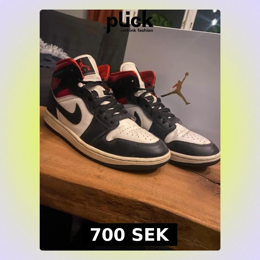 Säljer mina svarta o röda Jordan 1’s då de bara står och har vuxit ur de. Sparsamt använda i ca 6 månader. Finns en liten skada (se bild) Original kartong medföljer. Köptes online för runt ett år sen. Självklart så tvättar jag skorna innan jag skickar! Pris är ej hugget i sten! 😆