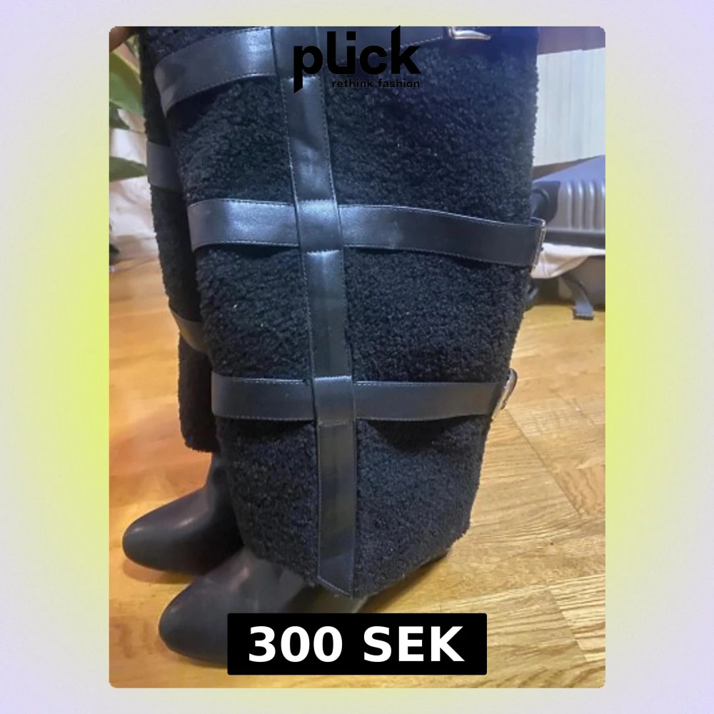 Unika svarta boots med päls och spännen