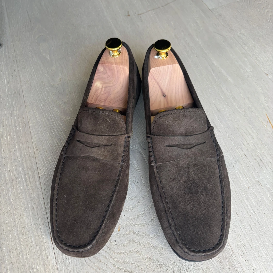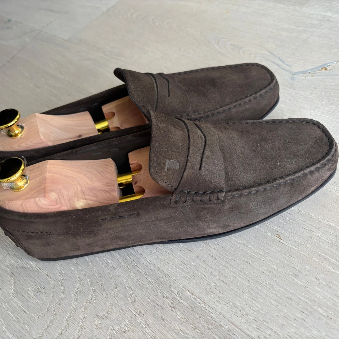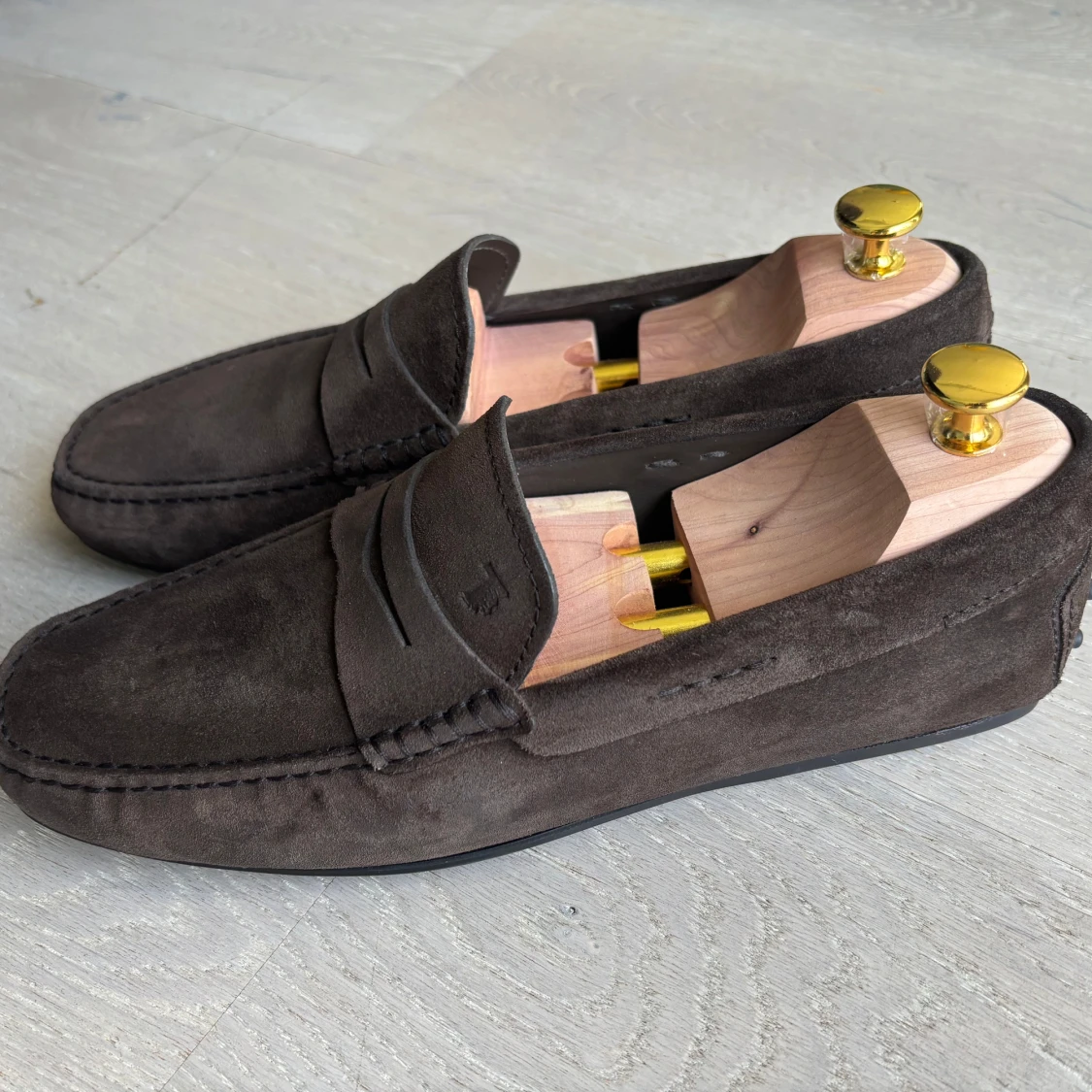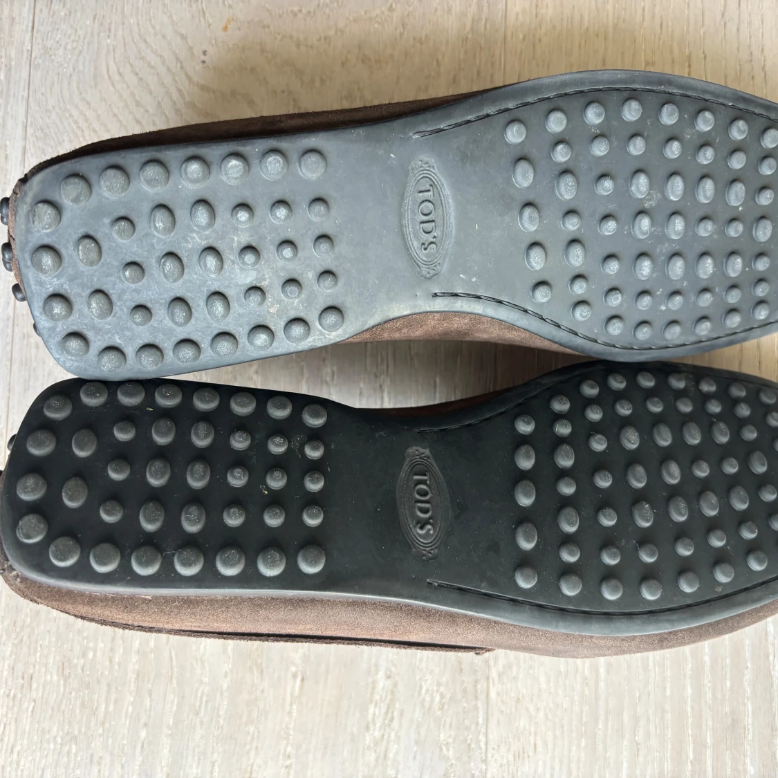 Säljer ett par stilrena bruna Tod’s loafers i brun mocka med klassisk design. Skorna har diskreta sömmar och platt sula,y perfekta för en dressad look. Storlek 41 herr.
