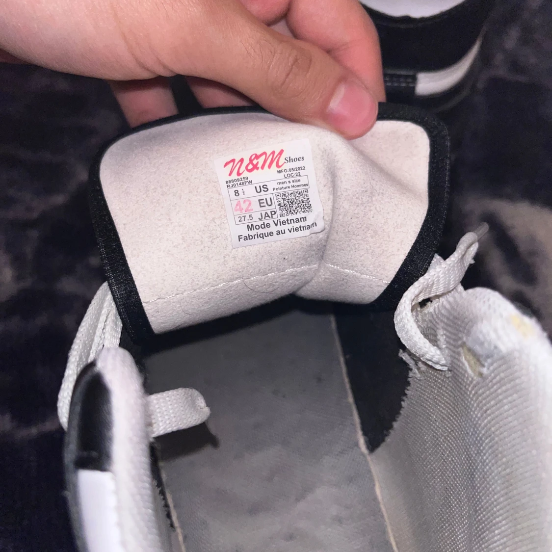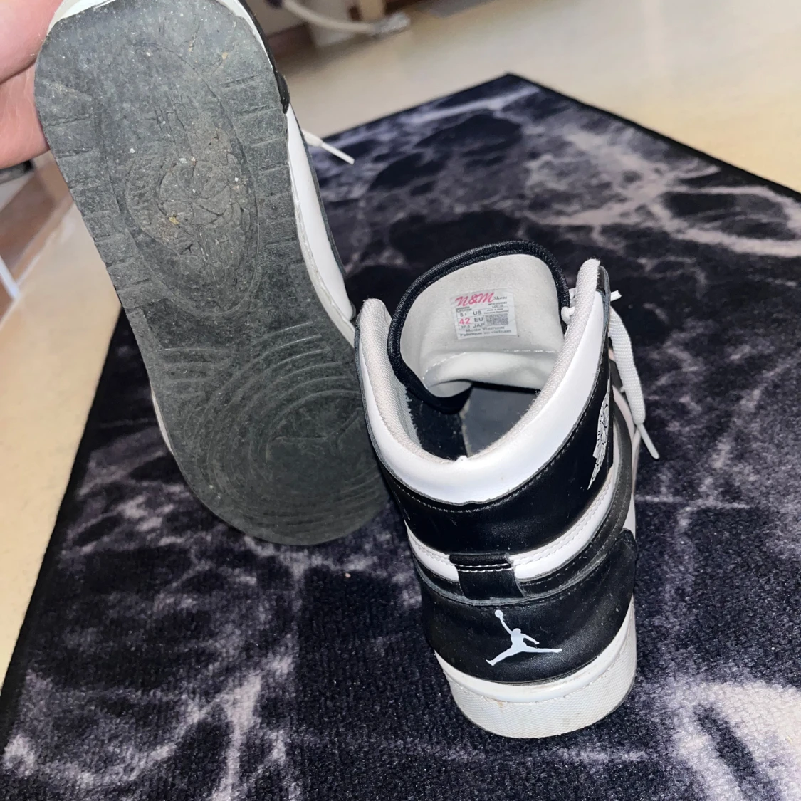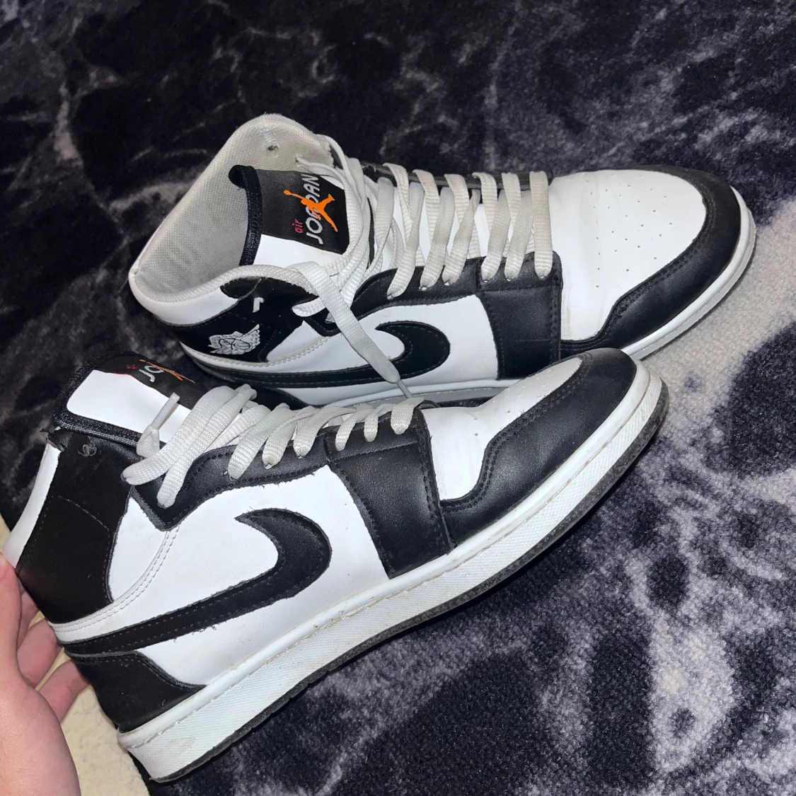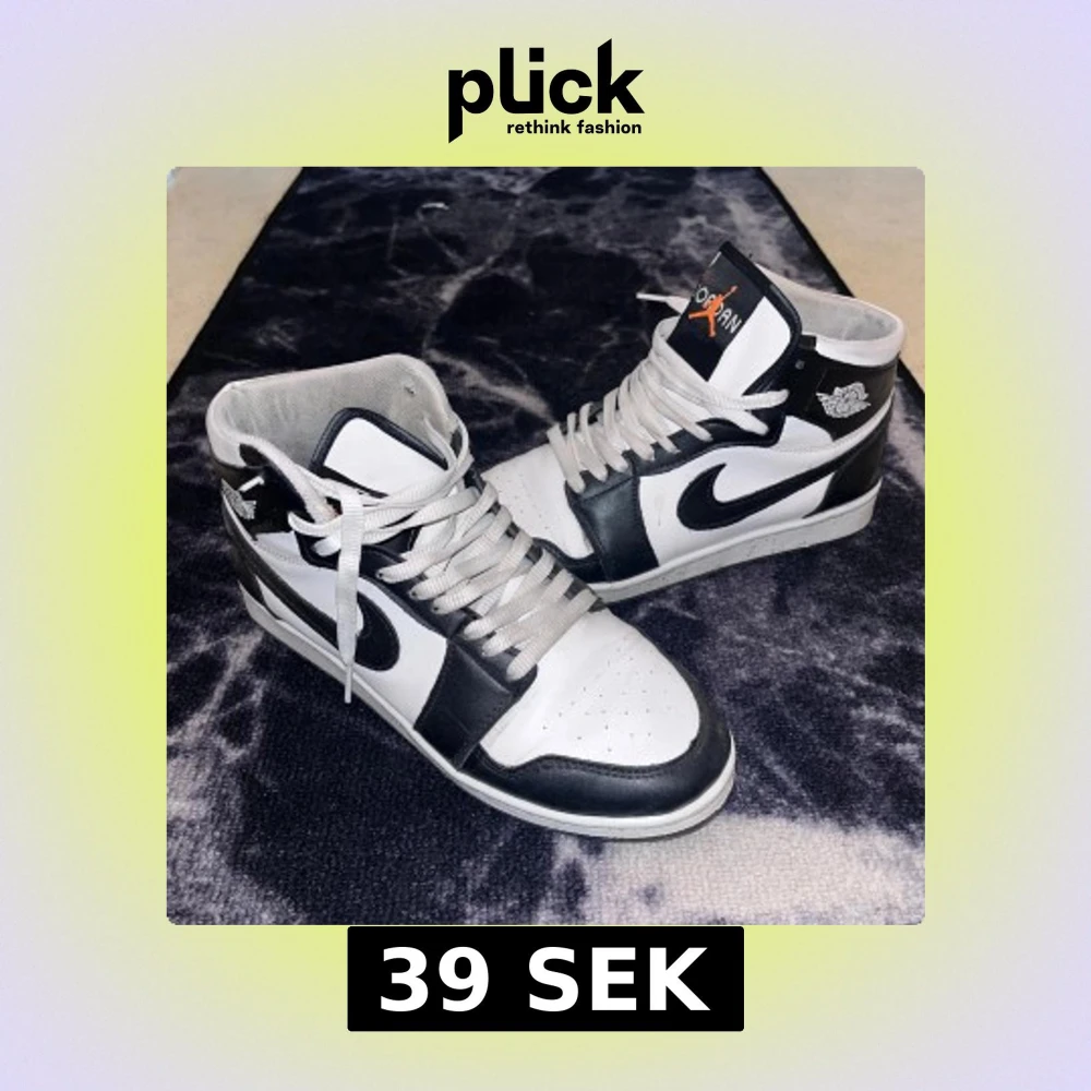 Snygga jordan 1 från N&M Shoes i storlek 42. passar 40-42Skorna har klassisk snörning, vit sula och svart swoosh-detalj på sidan. Perfekt för dig som gillar streetstyle och vill sticka ut med en stilren look.