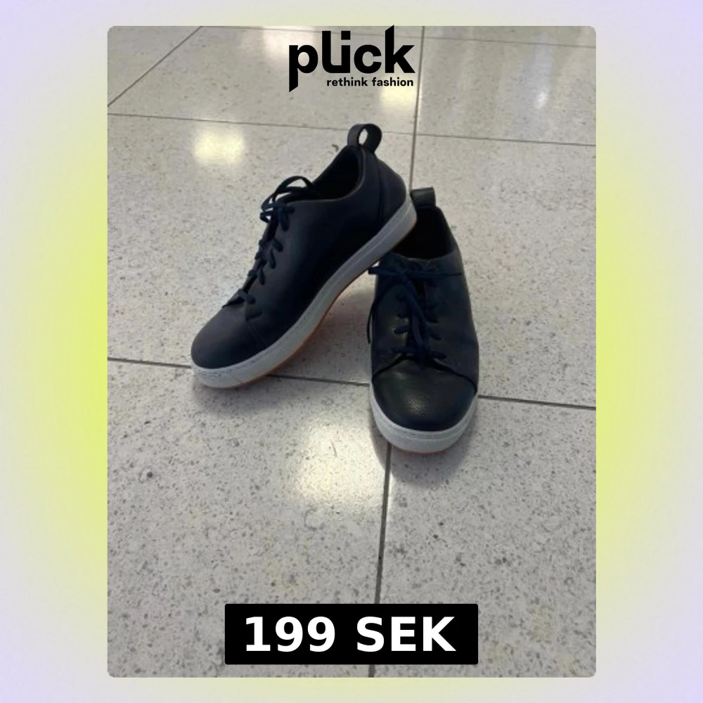 Snygga mörkblå sneakers med rund tå och vit platt sula. Skorna har snörning och är tillverkade i ett slätt, lätt texturerat skinnmaterial. Perfekt för dig som gillar stilrena och klassiska sneakers med en modern touch.