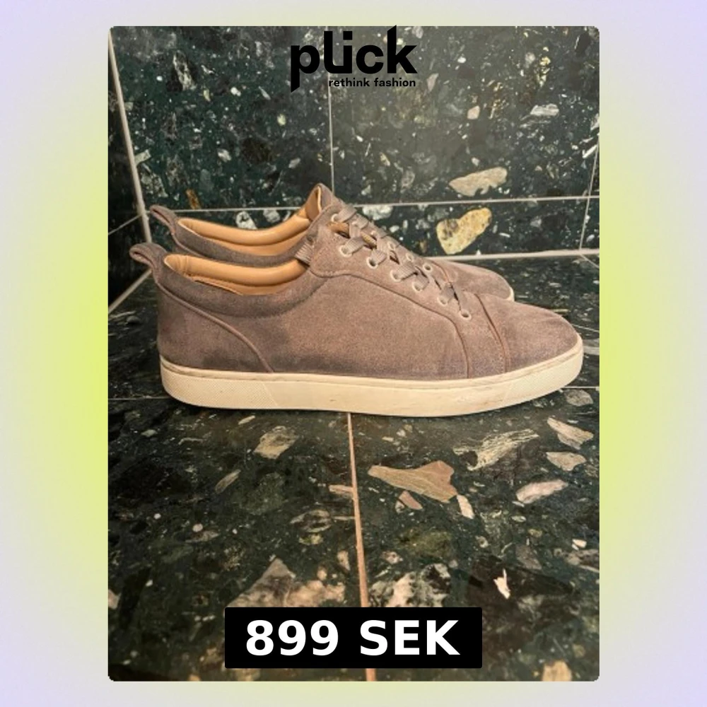 Snygga grå loubs med vit platt sula och coolt röd undersida. Skorna har rund tå, snörning och ventilerande hål på sidan. Insidan är beige och de har en stilren, minimalistisk look som passar alla. Saknar en knapp på sidan. Storlek 42