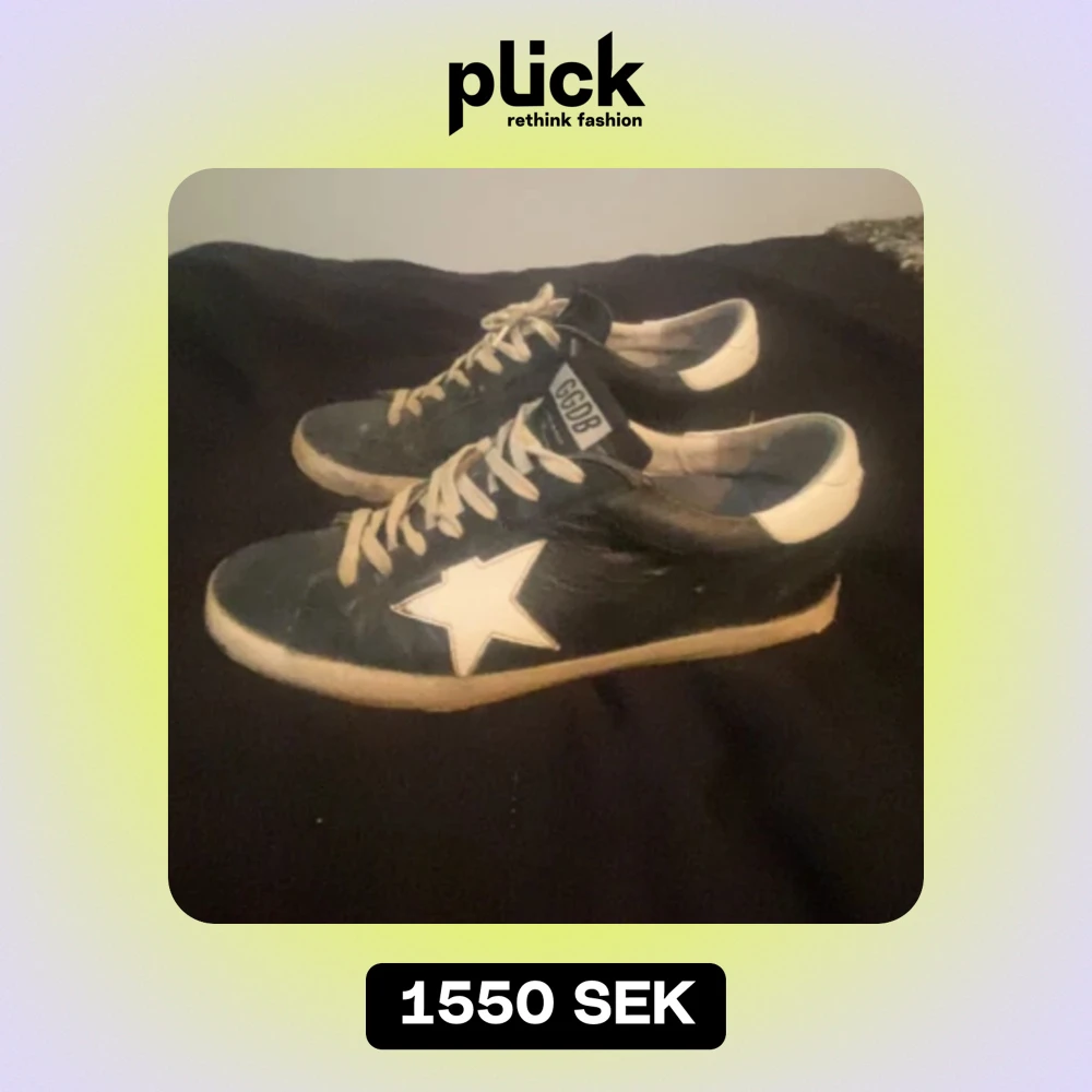 Säljer nu ett par riktigt snygga skor från golden goose!! Skick 7/10 dem är ganska använda men ändå i ett gott skick. Dem är perfekta till sommaren. Kontakta mig för fler frågor👍🤝🙌