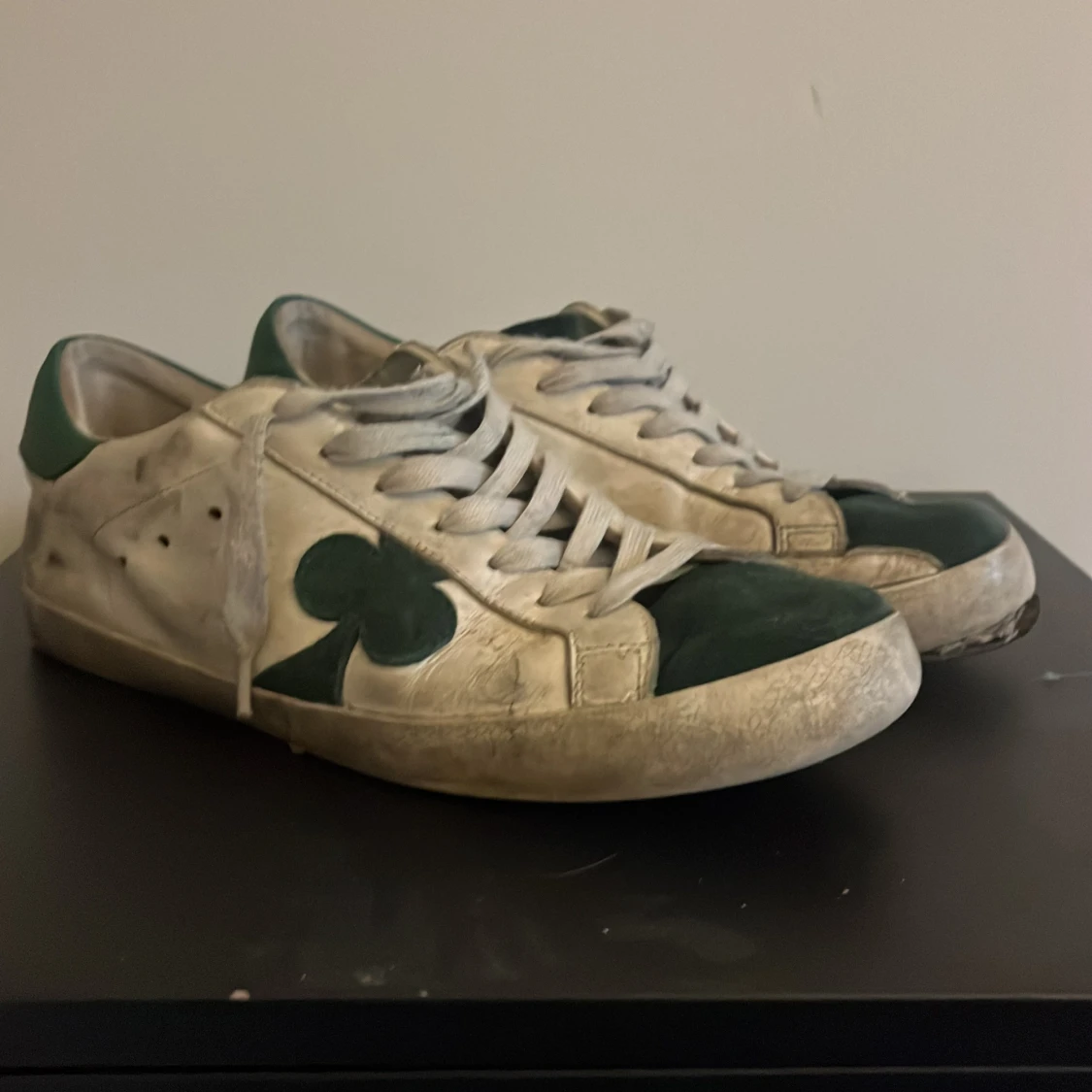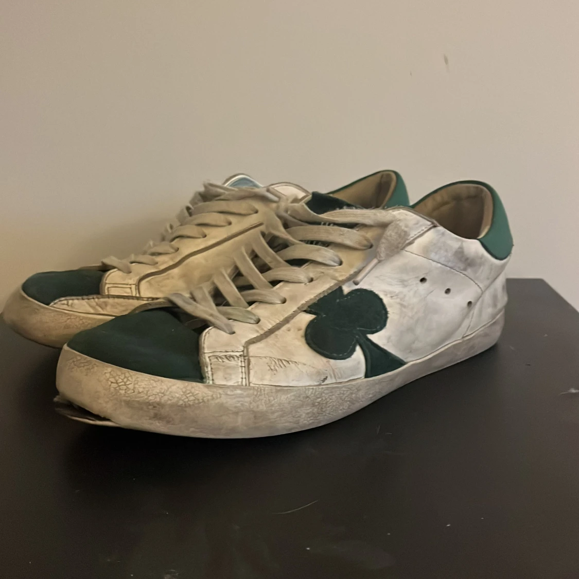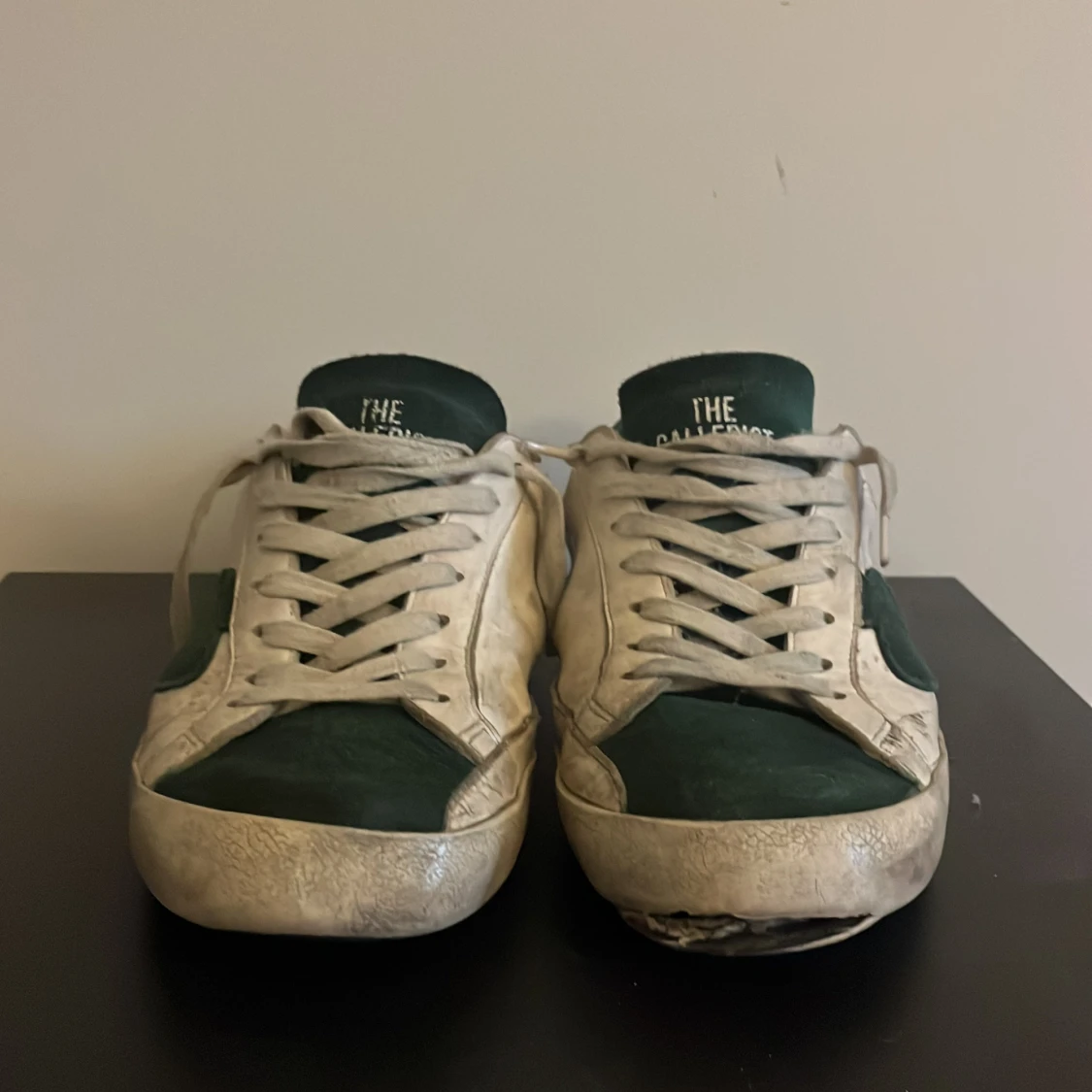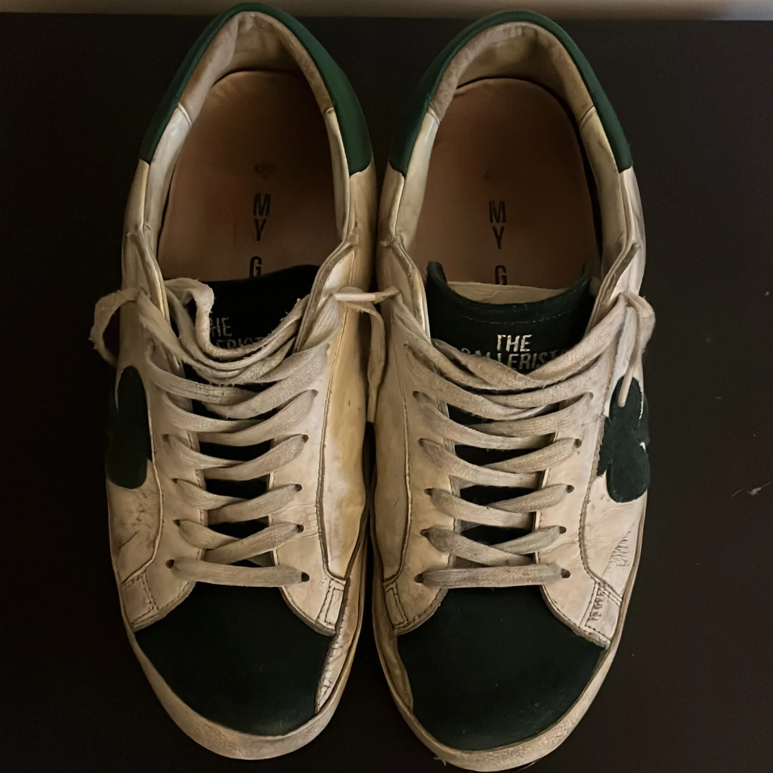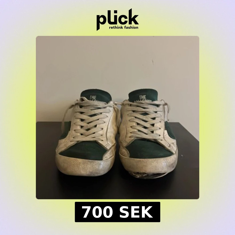 Ett par vit gröna skor från the galleryst! Storlek 42. Ganska sliten på baksida sulan och på framsidan. Box följer med på köp! Perkeft för dig som vill lägga en liten touch på sin outfit. Kontakta om frågor och pris kan diskuteras🤝