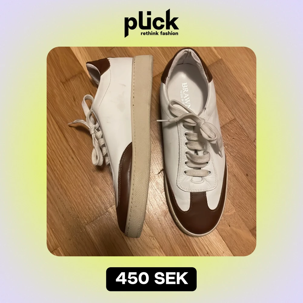 Säljer ett par snygga skor från Brawn's i vitt och brunt. De är i skinn och har en klassisk design med snörning. Perfekta för både vardag och fest! Tillverkade i Italien, vilket garanterar hög kvalitet. Sulan är i en krämig beige färg som ger en fin kontrast.