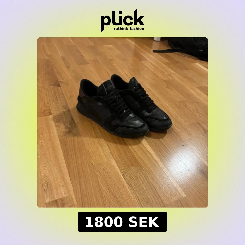 Snygga svarta sneakers från Valentino Garavani med ett diskret camouflage-mönster. Skorna har snörning och är tillverkade i en kombination av skinn och syntetmaterial. Perfekta för en stilren look.