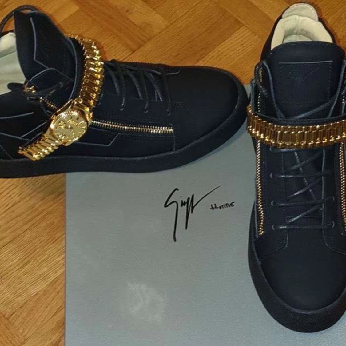 Svarta sneakers med gulddetaljer från Giuseppe Zanotti