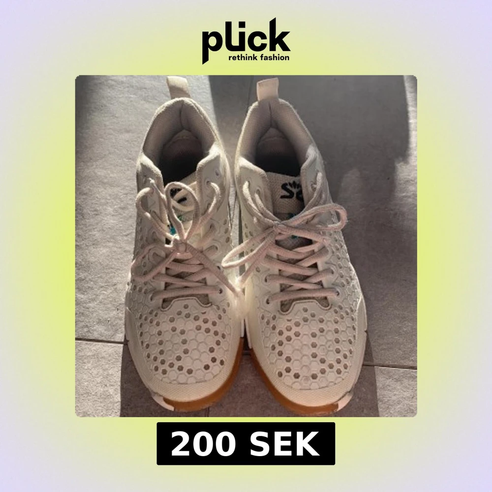 Säljer ett par vita Salming sneakers med coolt hexagonmönster och gummisula. Skorna har snörning och är perfekta för träning eller vardag. Lätta och ventilerande med sportig look.