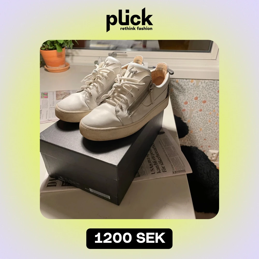 Säljer ett par vita sneakers från Giuseppe Zanotti i bra skick. Skorna har snörning och dragkedja på sidan. Storlek 43,5. De är självklart äkta. Billigare pris vid snabb affär!