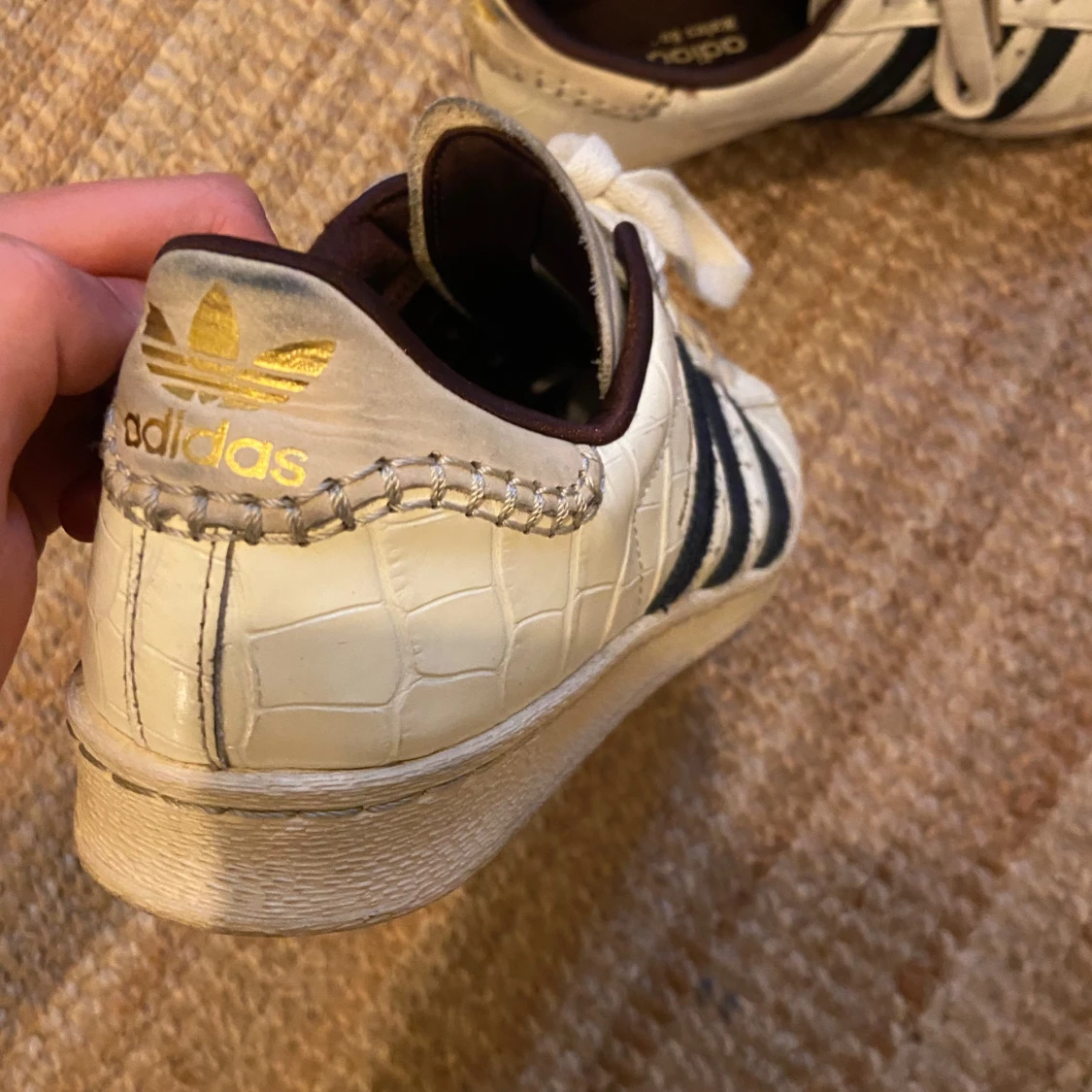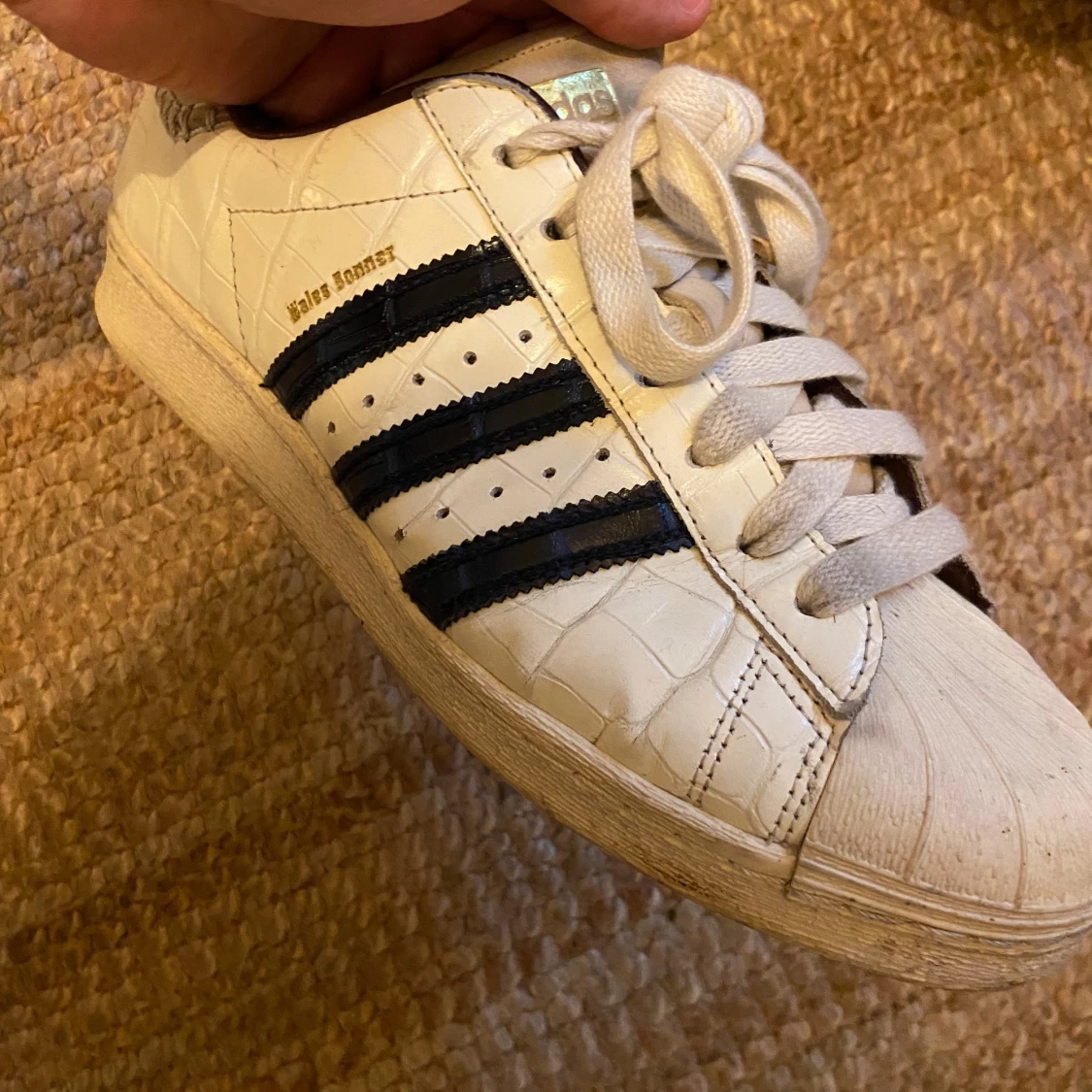 Hej! Säljer dessa Adidas superstar x Wales Bonner White Croc då dom tyvärr är för små för mig. Vanligt använt skick. Köptes begagnat via Grailed för några veckor sedan, går för ca 3000 på stockx i nyskick