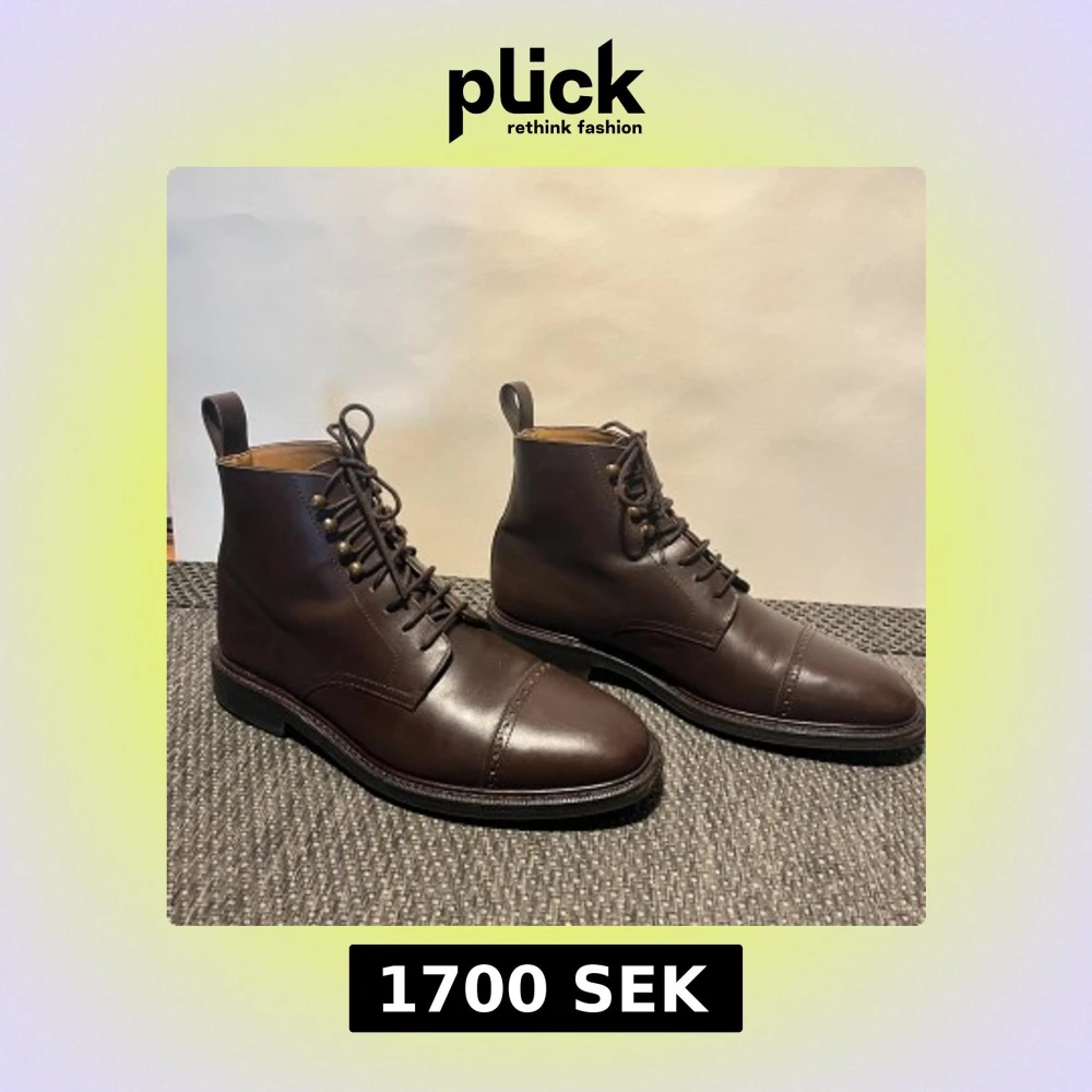 Tjärnö in dark brown calf exemplifies rugged refinement with its distinctive toe cap punching and robust construction. Built with a 360° storm welt providing excellent water protection, this jumper boot combines durability with sophisticated detailing and a studded rubber sole. Goodyear welted construction Handcrafted in Portugal Made with premium full-grain calf Leather board heel stiffeners and cork filling