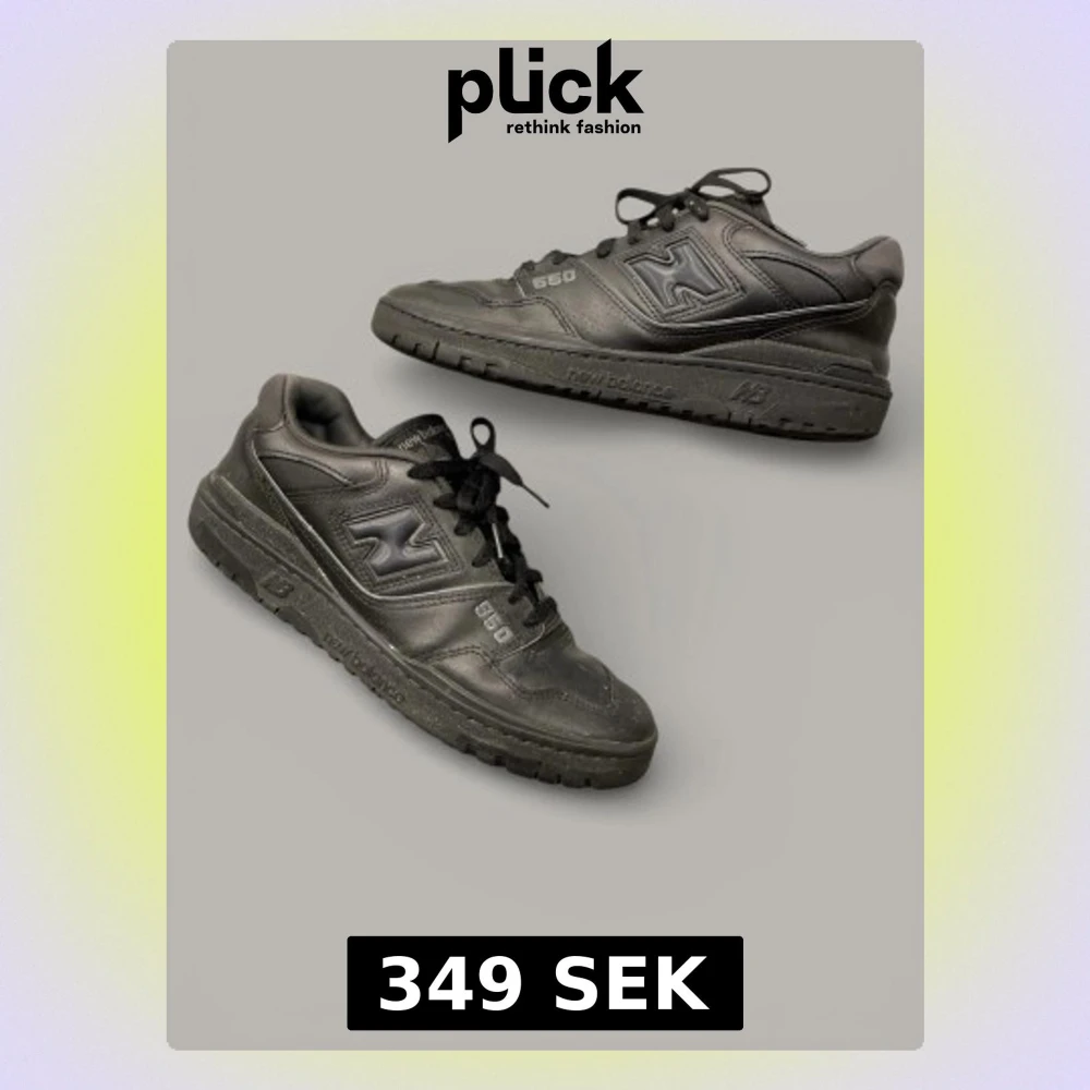Säljer ett par New Balance 550 (modell BB550BBB) i färgen triple black. Skorna är i överlag gott skick och har använts normalt. Det finns en liten defekt på ena skon: en mindre söm har gått upp på ett ställe (se bilder). Utöver detta är skorna i bra skick och har mycket användning kvar. • Storlek: EU 43 / US 9.5 • Färg: Triple Black • Original New Balance 550-modell • Rengjorda och väl omhändertagna Perfekta vardagssneakers till ett rimligt pris!