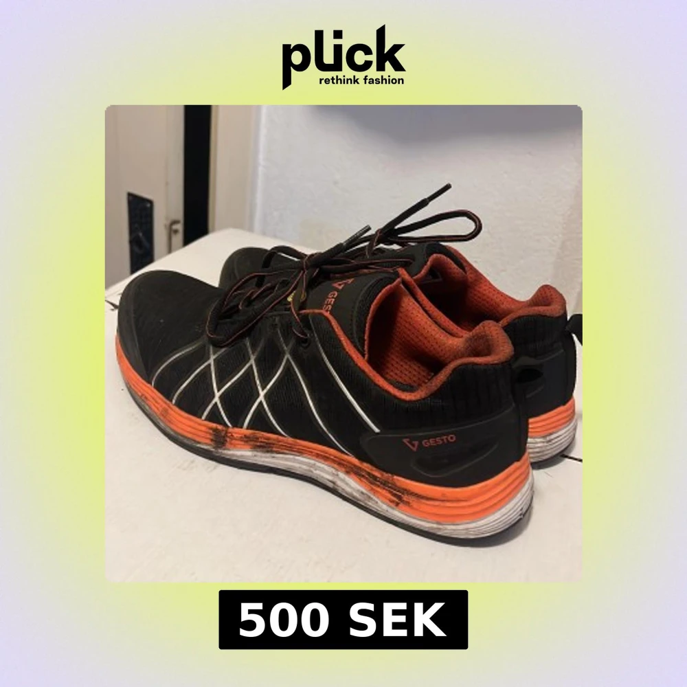 Snygga svarta sneakers från Gesto med orange detaljer och meshfoder. Skorna har snörning, vit och orange sula samt reflekterande mönster på sidorna. Perfekta för dig som gillar sportig stil och vill sticka ut med färg. Lätta och bekväma för träning eller vardag.