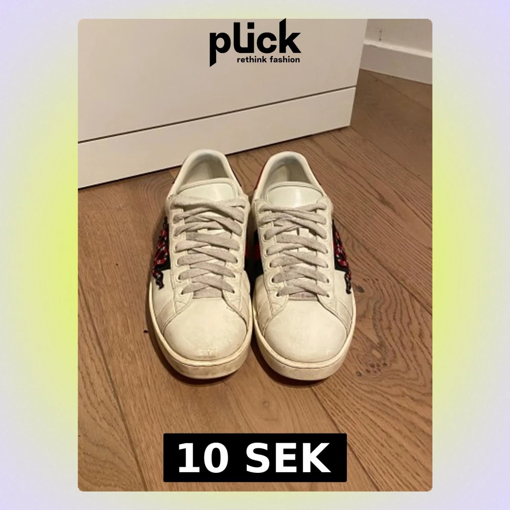 Tja! Säljer dessa guccii ace snake skor för att jag inte använder de längre. Har allt tillbehör förutom boxen. De är i bra skick och är i storlek 43. Finns mer bilder om du frågor om de