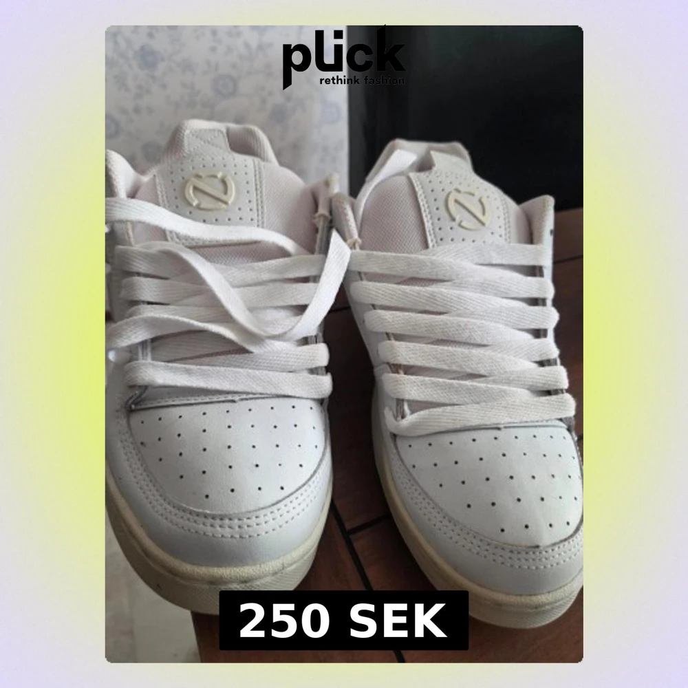 Snygga vita sneakers med perforerad tå och tjocka vita snören. Skorna har en låg profil och en stilren design med diskret logga på plösen. Ovandelen är i syntetmaterial och mesh för bra andningsförmåga. Perfekta för en clean och fräsch look.Fläckarna i skorna går säkert att tvätta bort.