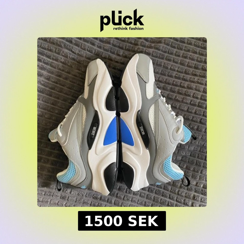Säljer ett par chunky D sneakers med cool design i grått, vitt och ljusblått. Skorna har meshdetaljer, skinnpaneler och vit sula med svarta och blå inslag. Tjock plattform och snörning framtill. Perfekta för dig som vill sticka ut med lyxig streetstyle.