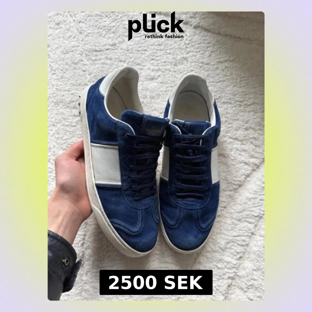 Snygga sneakers från Valazzino i blå mocka med vita detaljer och vit sula. Klassisk rund tå, platt sula och snörning framtill. Perfekta för dig som vill ha en stilren och sportig look.