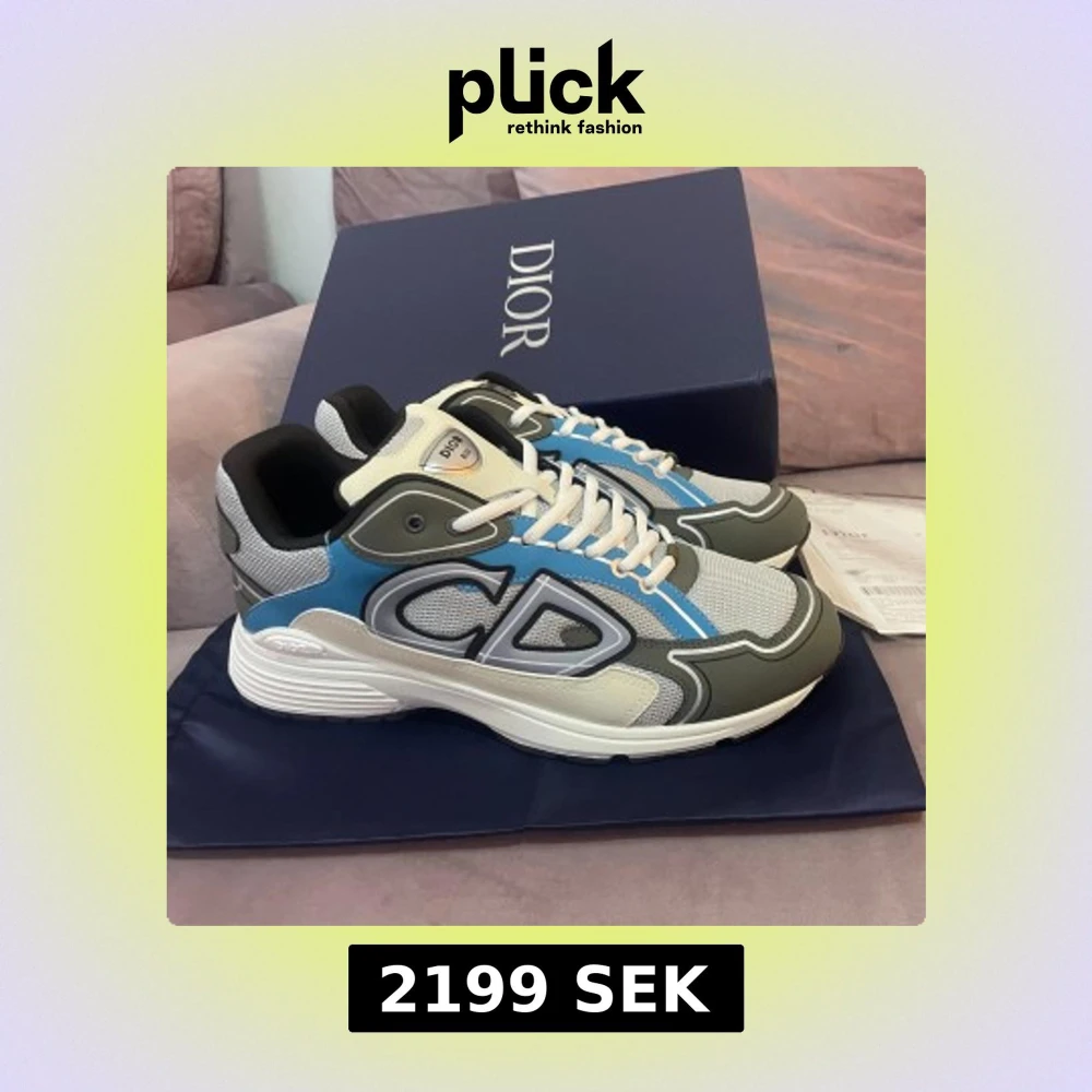 Säljer ett par snygga sneakers med chunky vit och svart sula, grå mesh, blå och vita paneler samt stora CD-loggor på sidan. Skorna har snörning och en modern, sportig vibe med coola kontraster och detaljer. Perfekt för dig som gillar exklusiva märken och streetstyle.